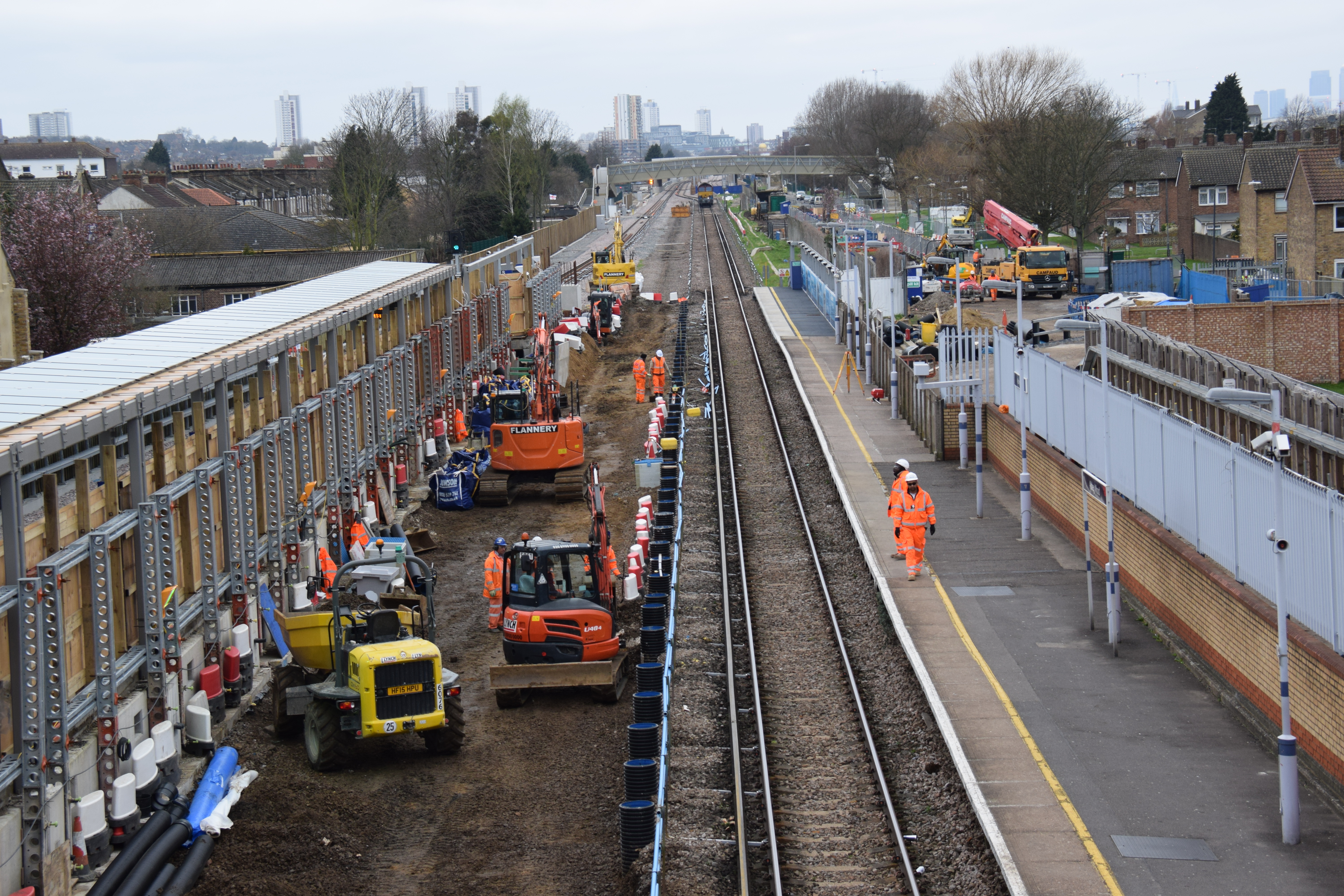 drainage work at Abbey Wood station in preperation for track work - arial shot.JPG