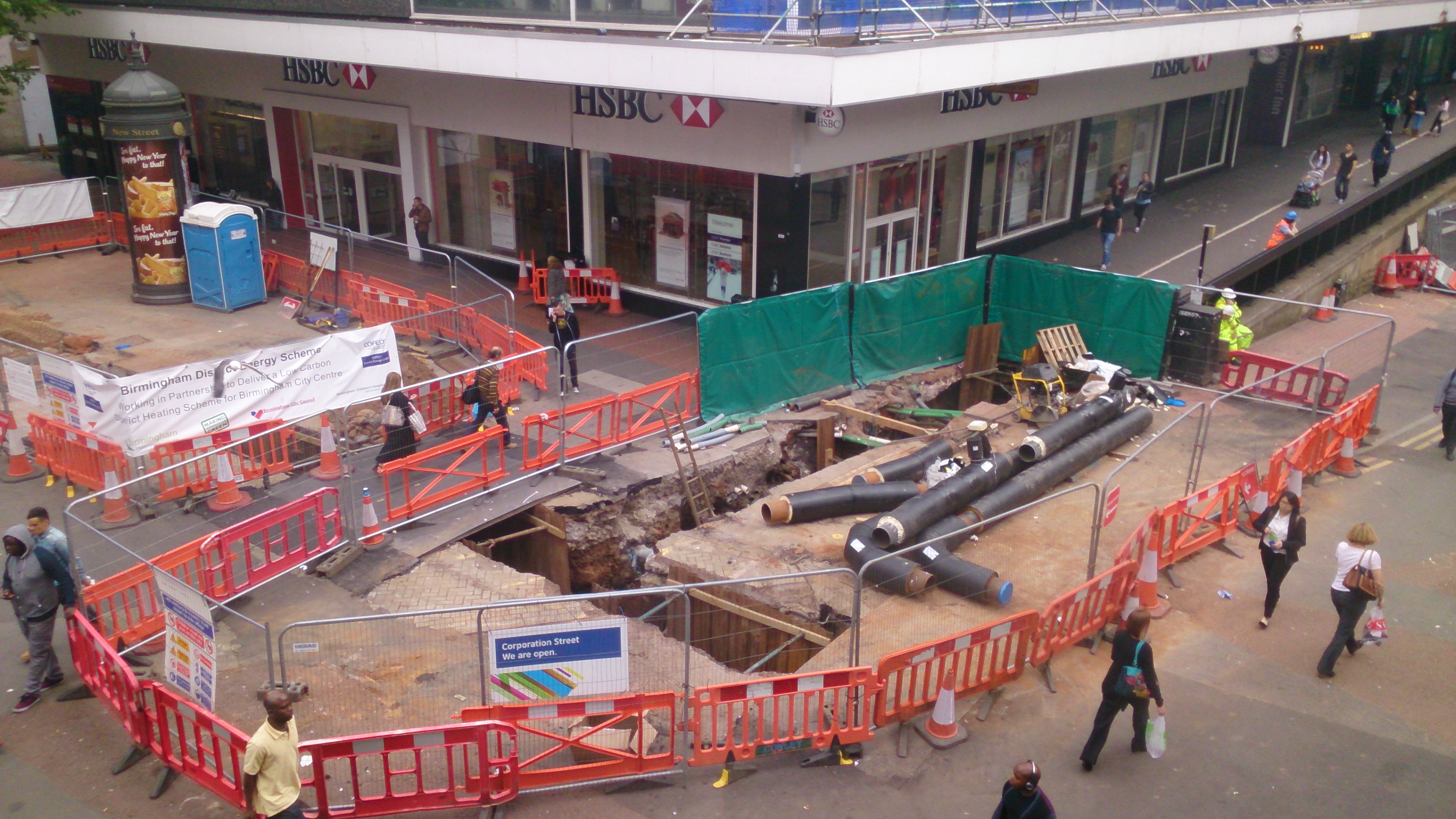 City centre district heating pipes being laid for combined heat at power station at Birmingham New Street 2