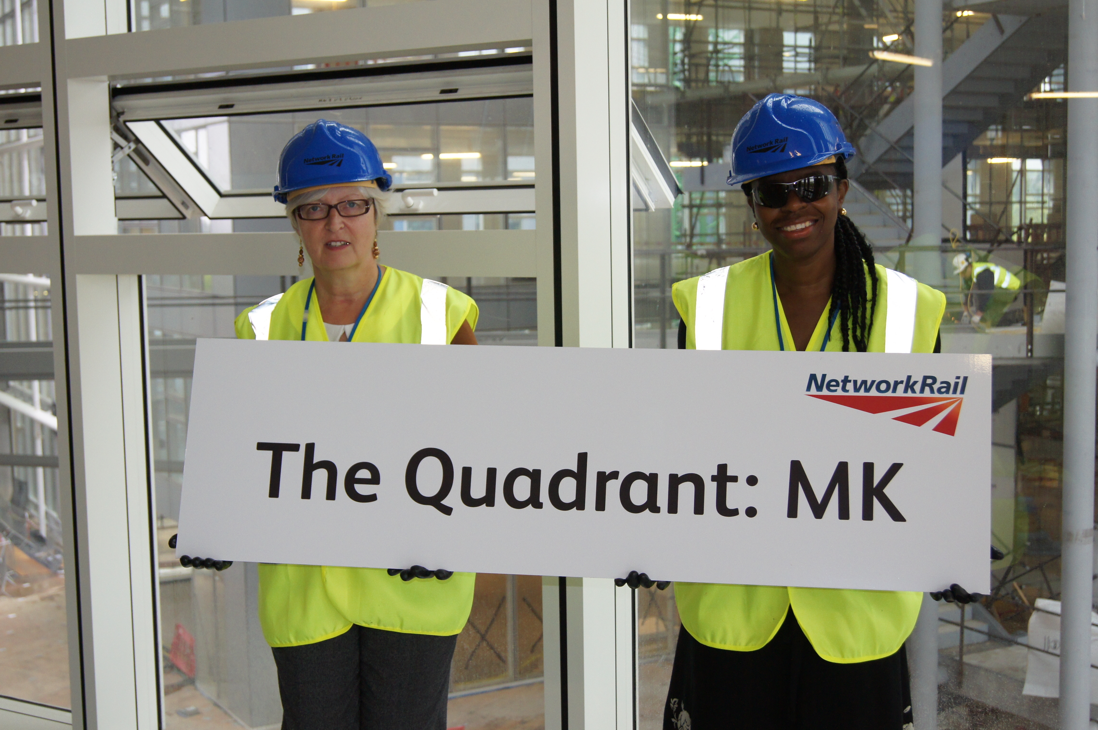 Diane Ritche (left) and Jacqui Wimbush (right) both suggested 'The Quadrant' as the name for Network Rail's new national centre in Milton Keynes. The two competition winners marked the official naming with a behind-the-scenes tour of the building, which open in the summer of 2012.