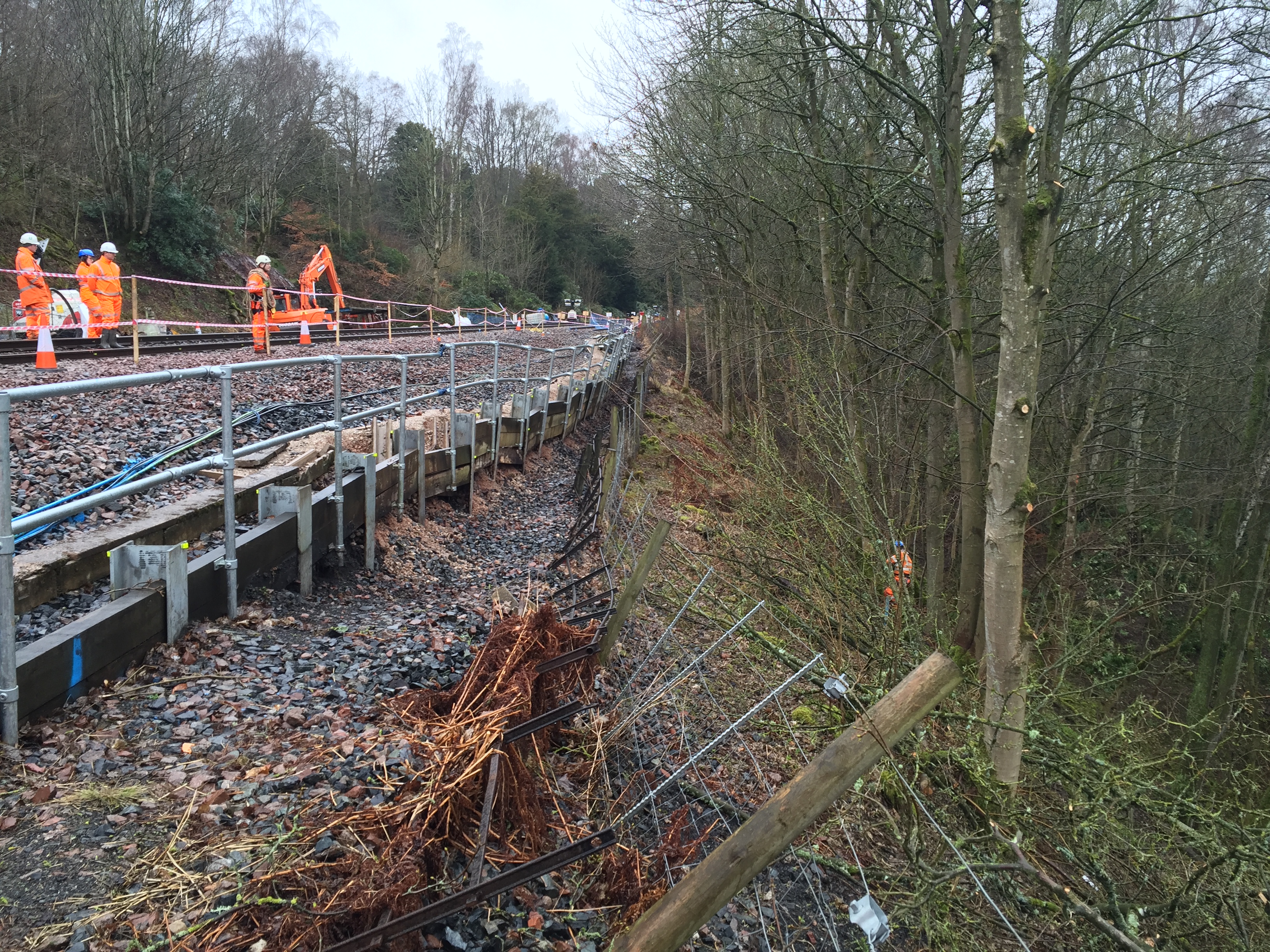Eden Brows. In the undergrowth to the right is Jerry Clelford, soil condition tester, abseiling down the embankment..jpg