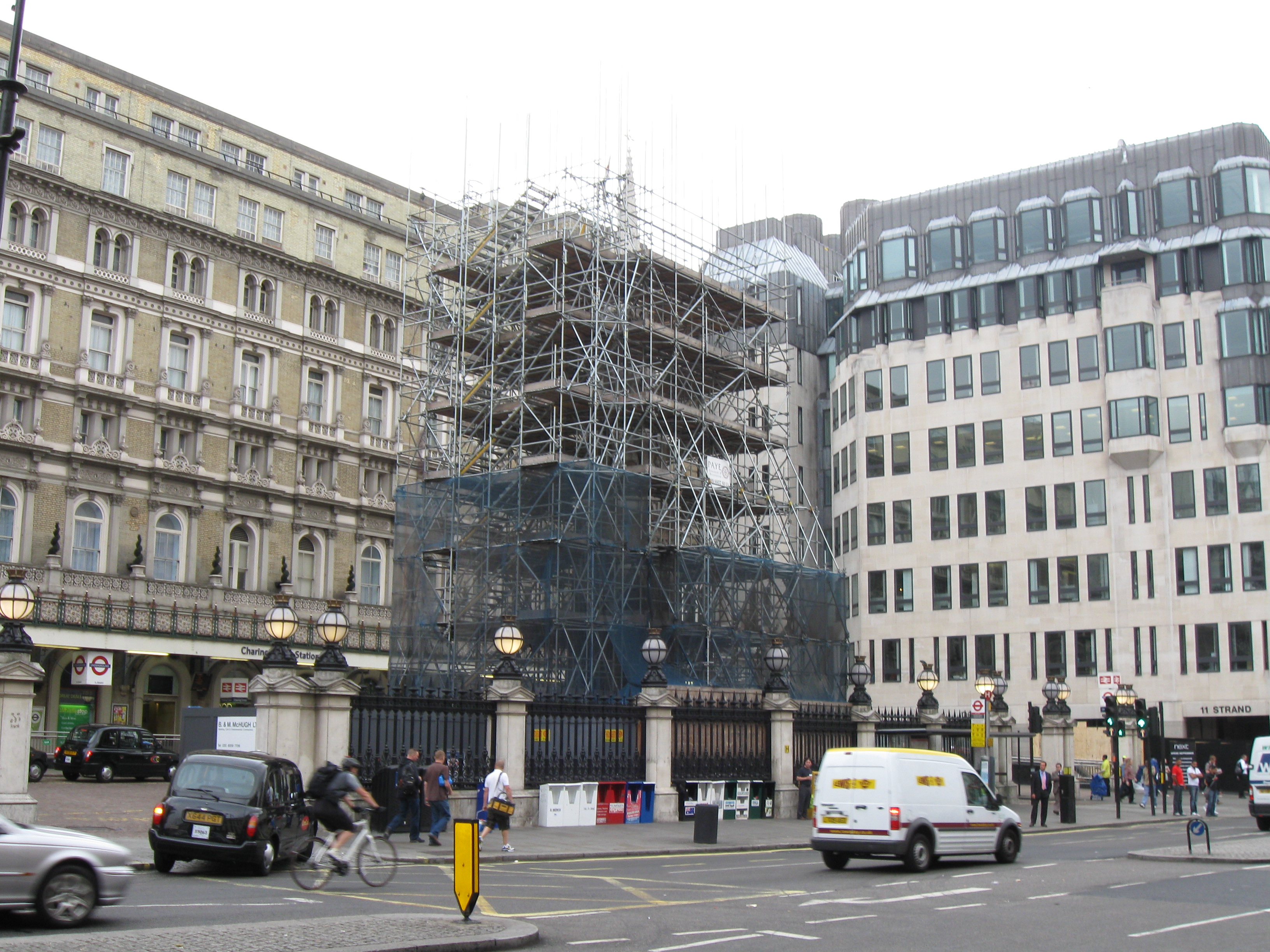 The scaffolding which has encased the Eleanor Cross for two years is taken down