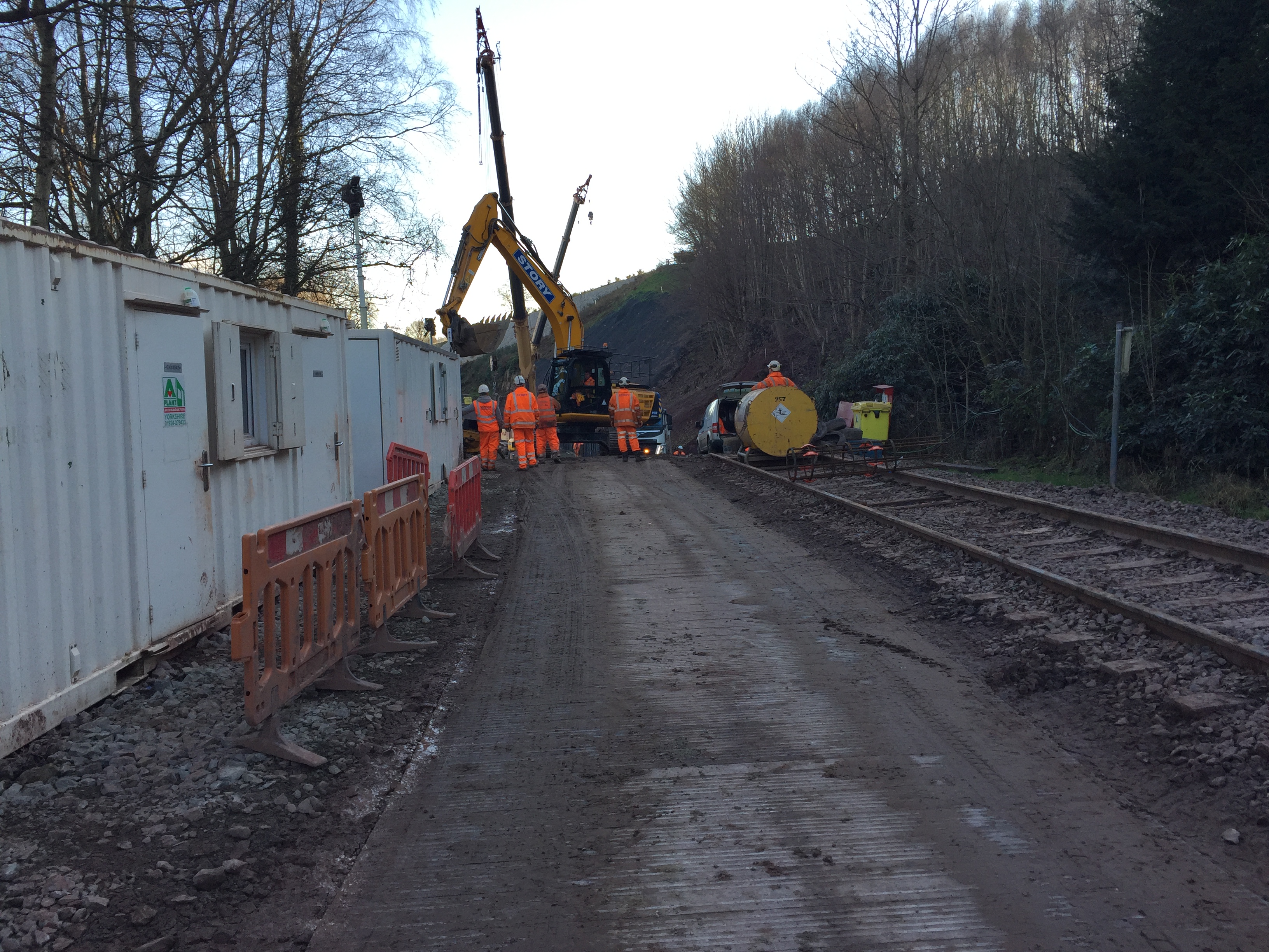 Engineers working at the site of the landslip at Eden Brows in Cumbria.JPG