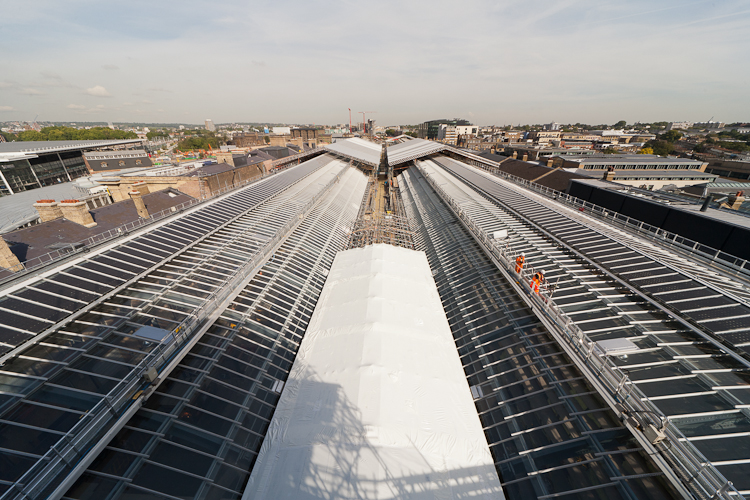 For the first time in half a century, passengers can pass through the concourse at King’s Cross station bathed in natural daylight after the first section of the new roof was unveiled.