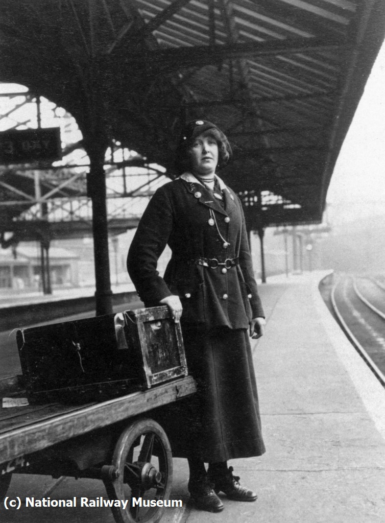 Female porter on the Lancashire and Yorkshire Railway during World War One