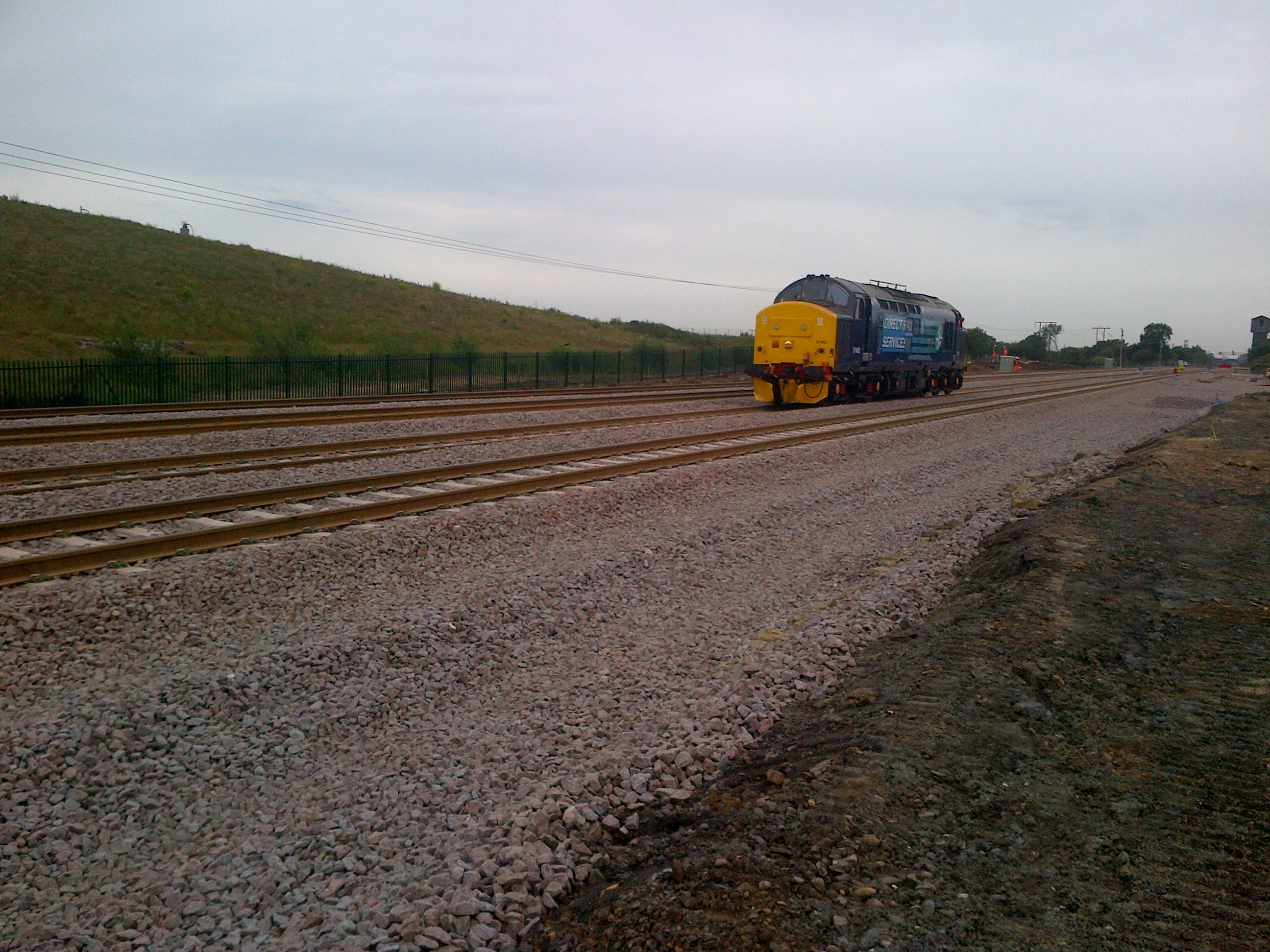 Route proving train completes first run through site affected by spoil heap slip at Hatfield Colliery in Feb 2013 following extensive repair work