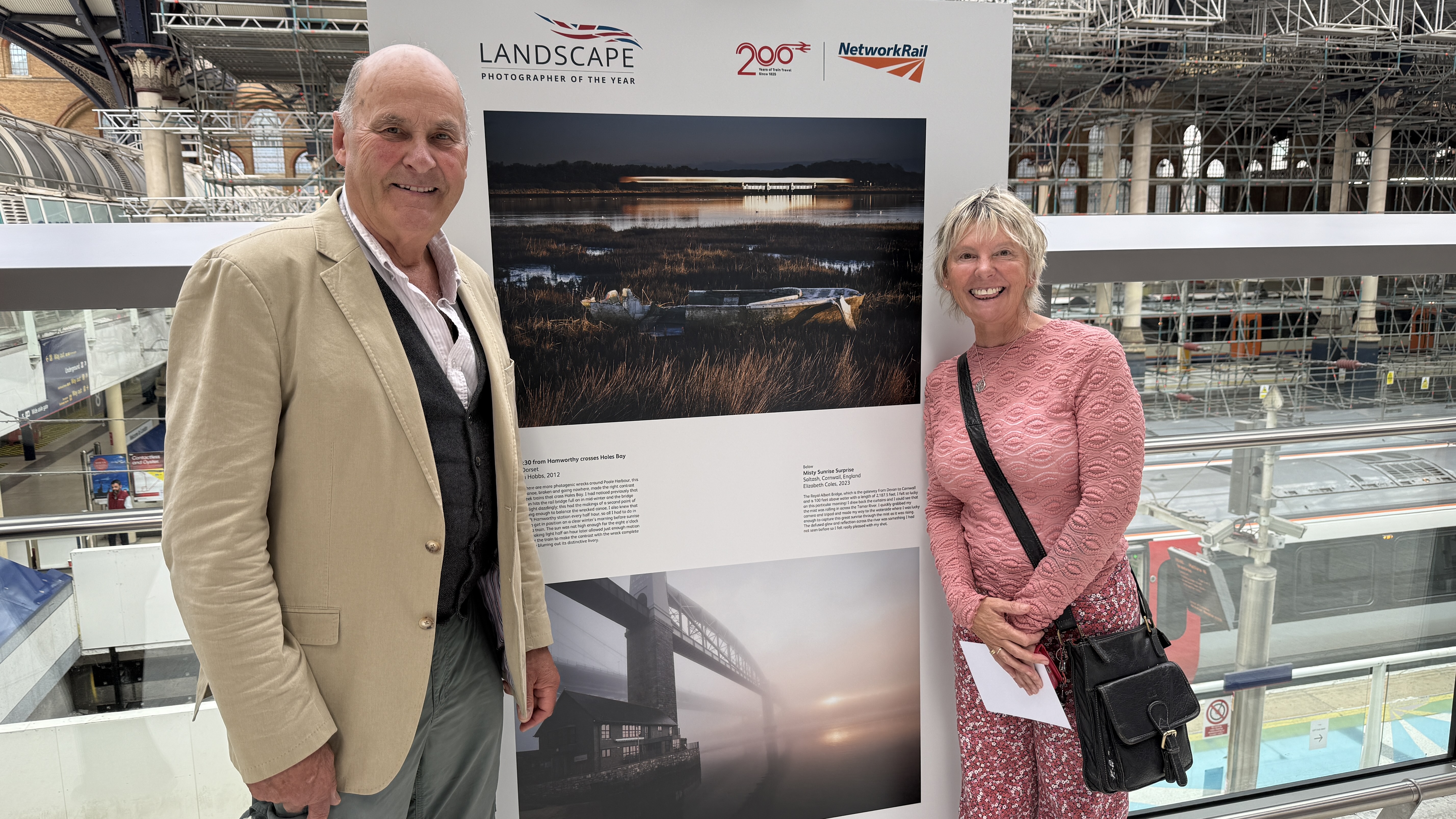 Founder of Landscape Photographer of the Year, Charlie Waite, with photographer Elizabeth Coles and her featured photo in the exhibition (below)