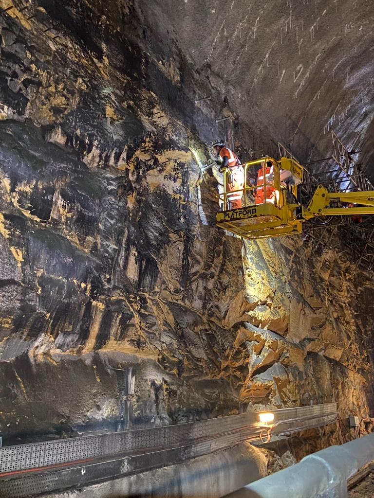 Engineers examining stone tunnel walls inside Liverpool High Neck tunnel