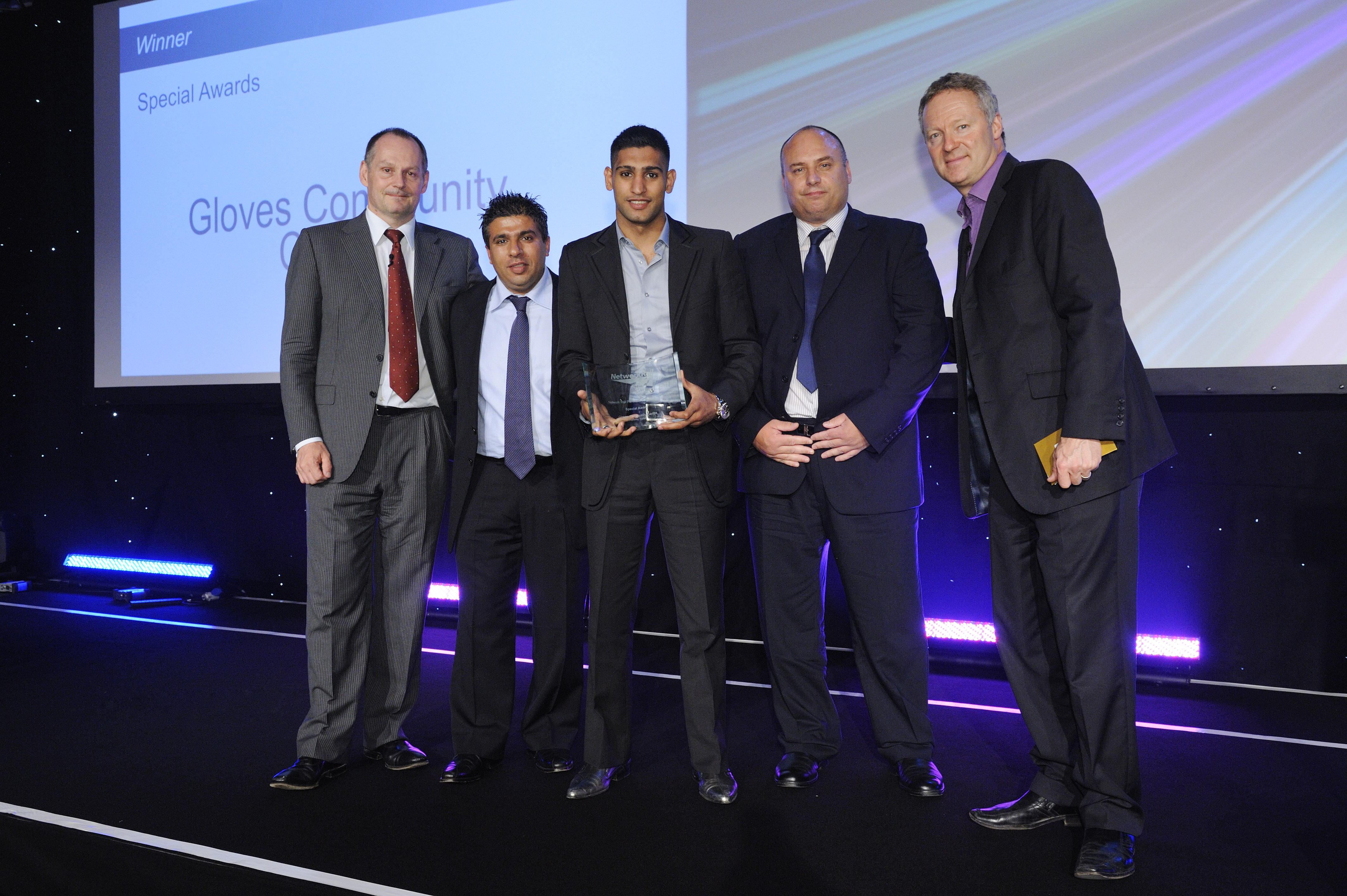 Amir Khan collects a special award for Gloves Community Centre by Iain Coucher