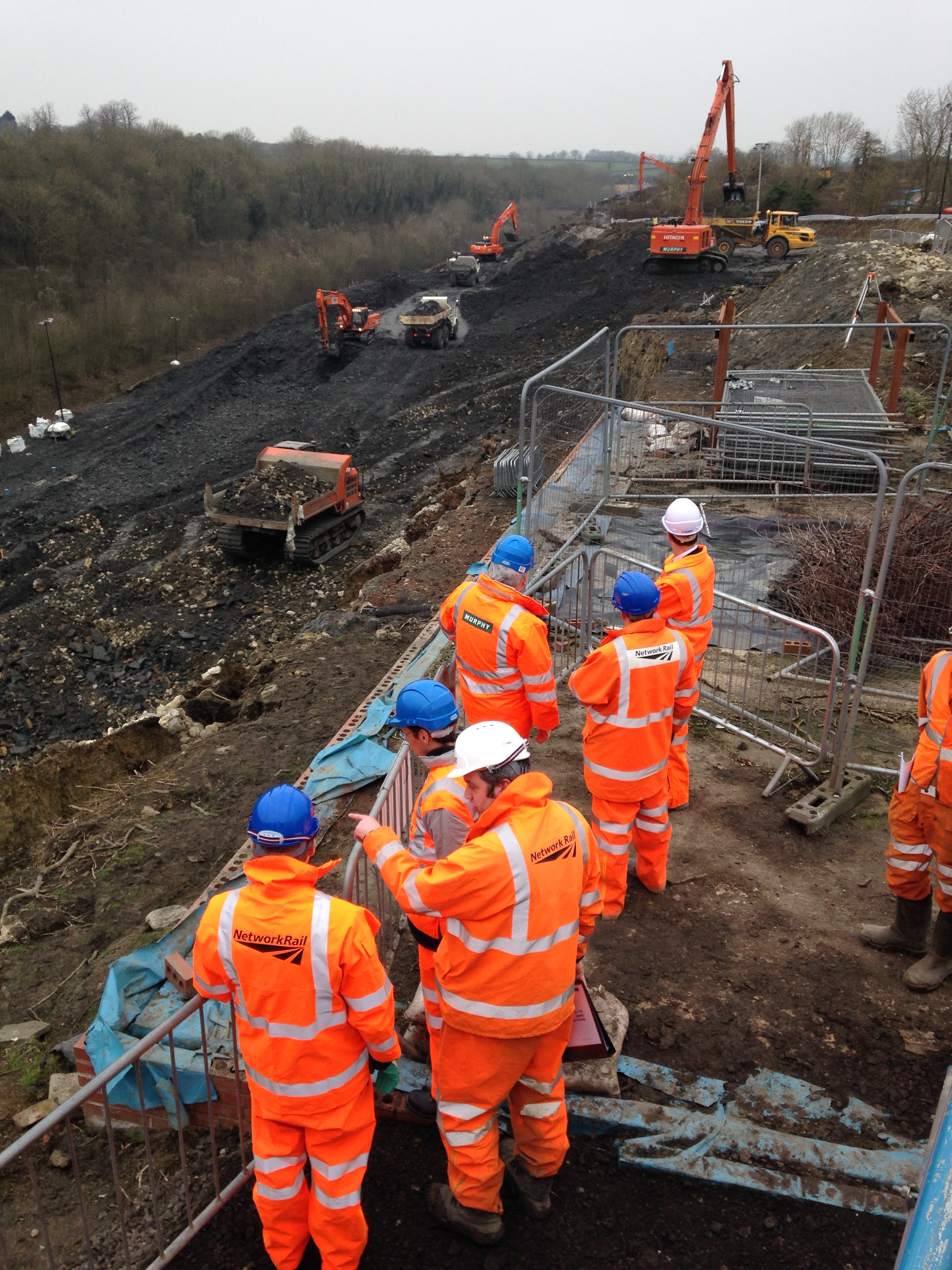 Visitors to the Harbury landslip watch work taking place to remove material from the cutting