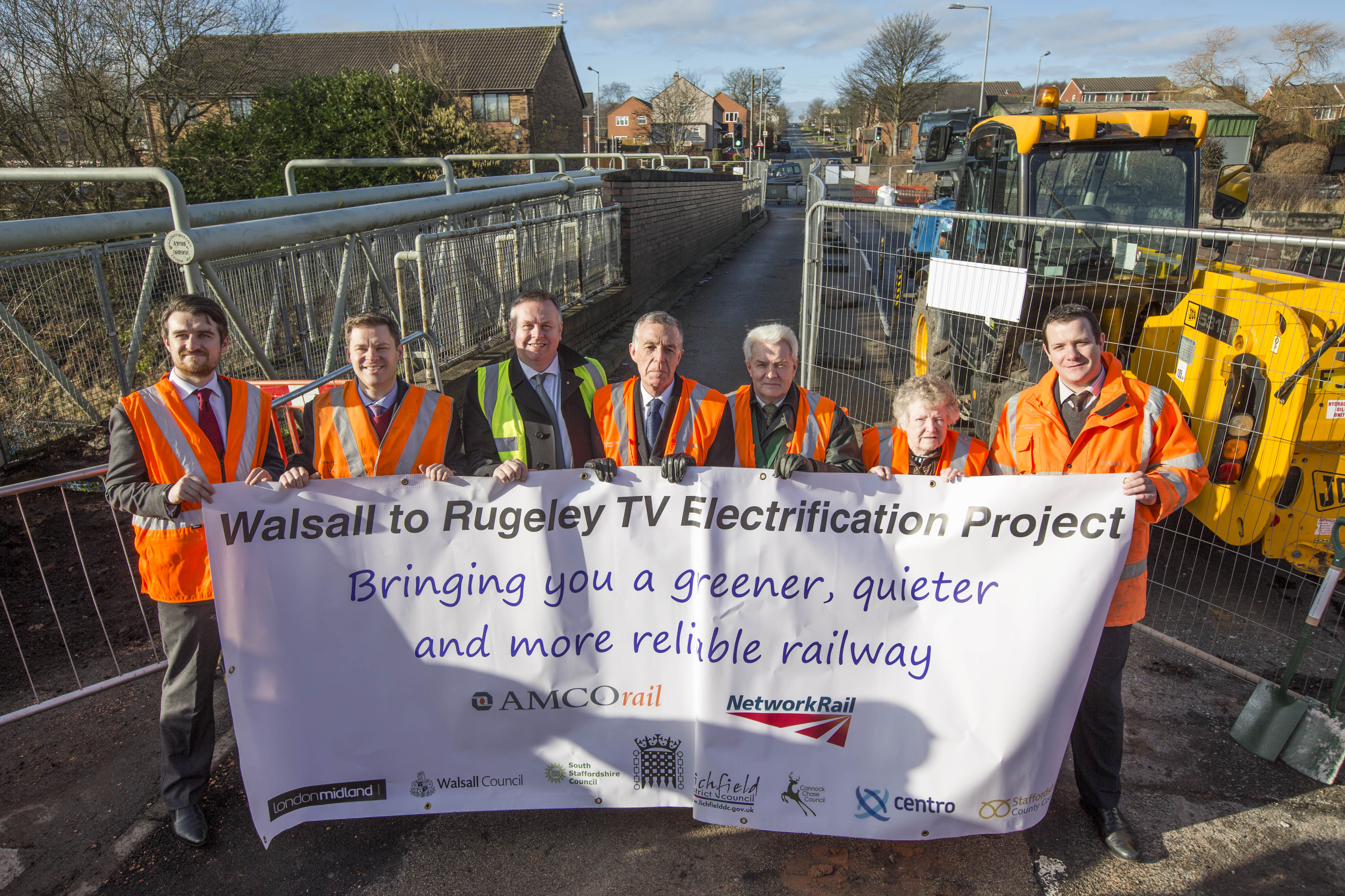 The start of work to demolish a bridge as part of the Chase Line electrification is marked in Hednesford