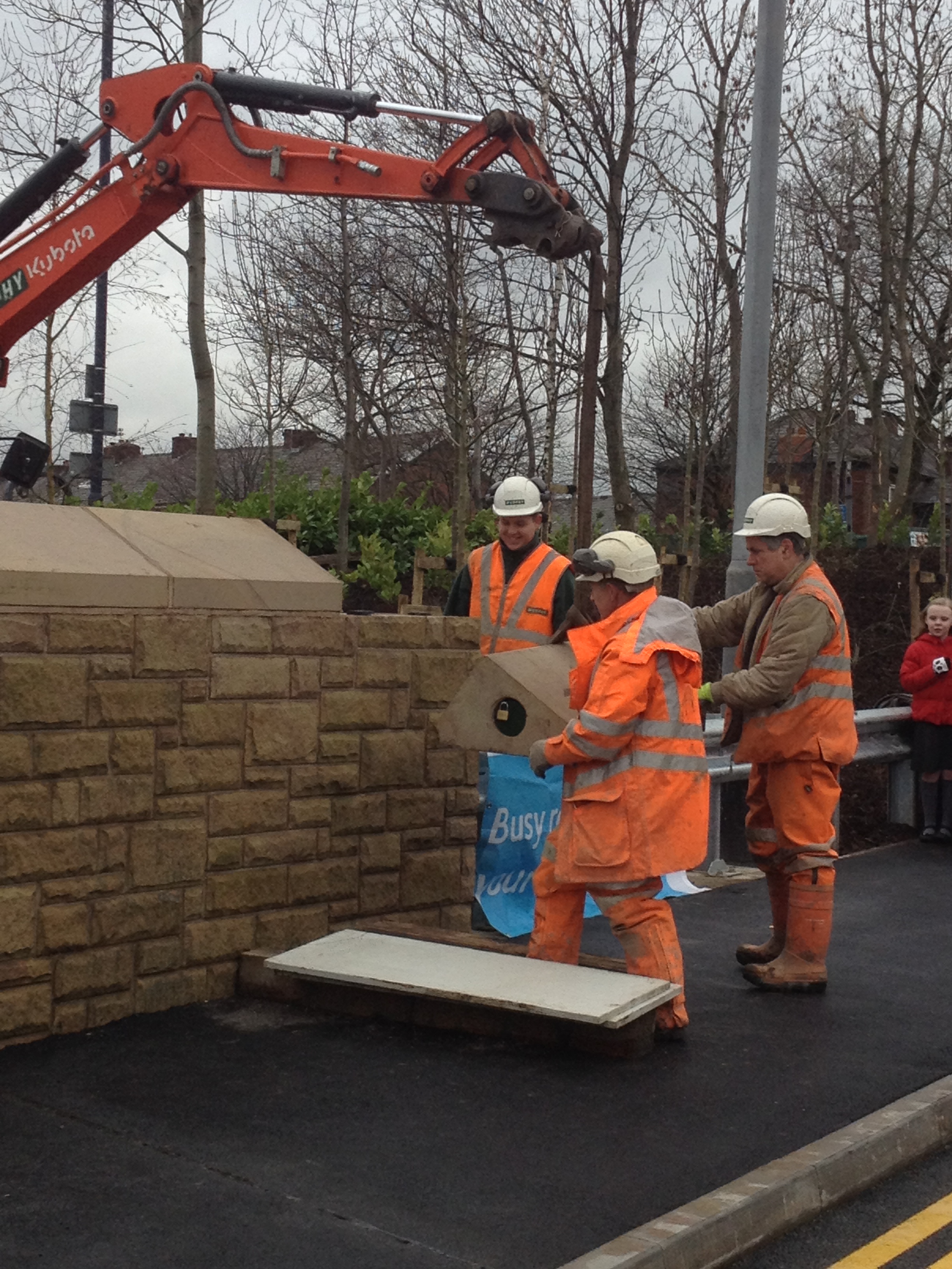 The final stone of the Henrietta Street bridge is lifted into place