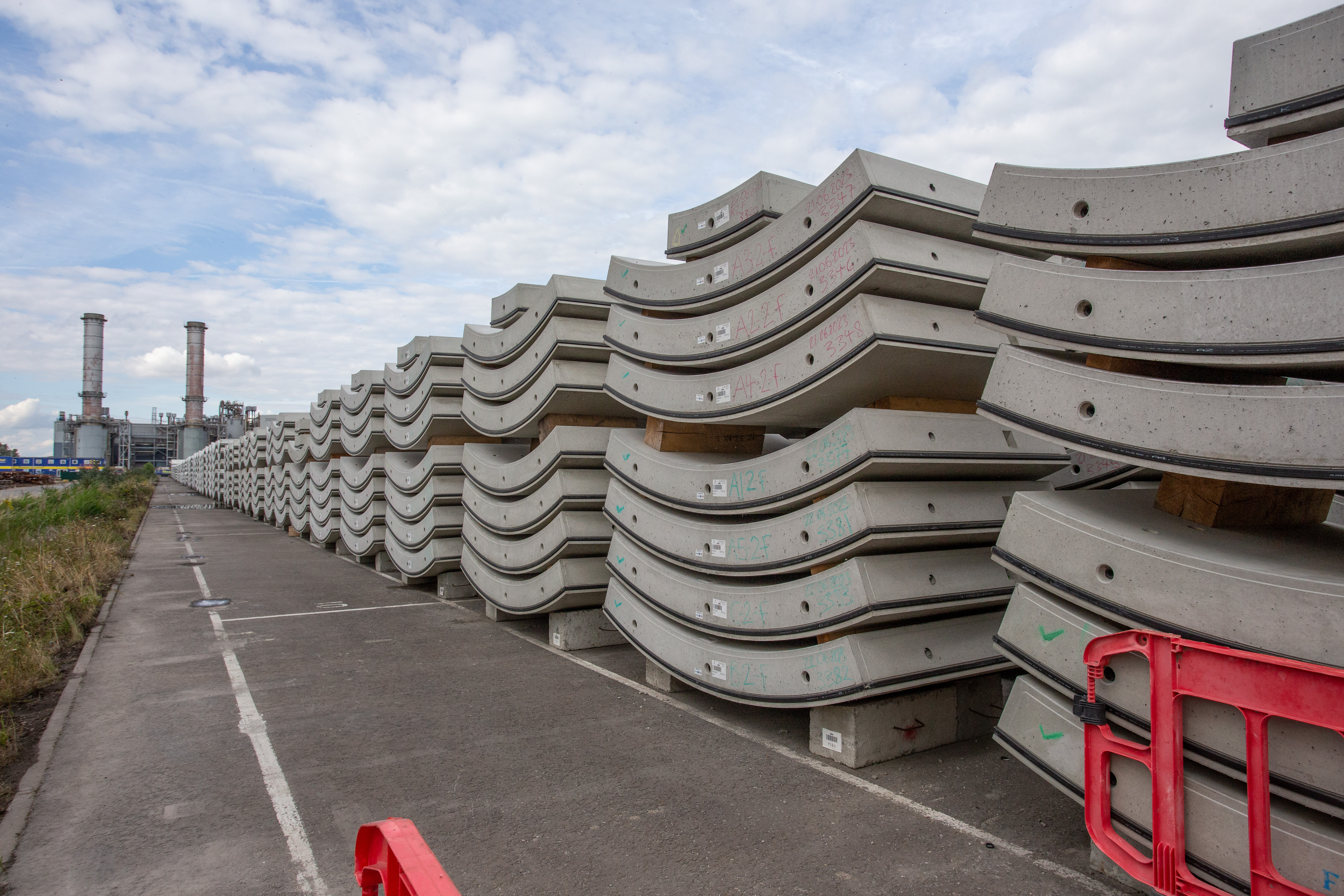 HS2 tunnel segments stacked at Pacadar, Thamesport