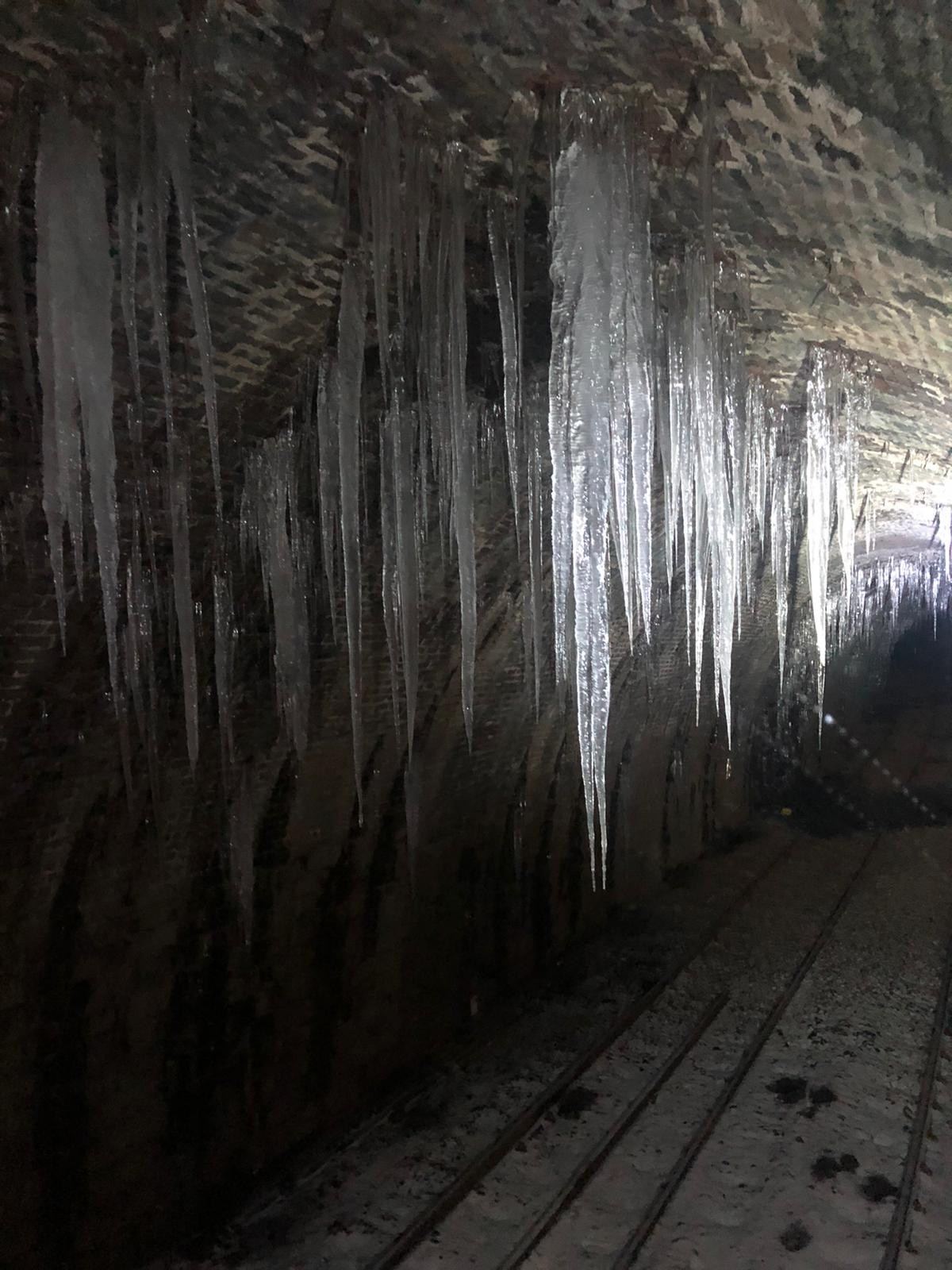 Icicles hanging inside railway tunnel on the Settle to Carlisle line
