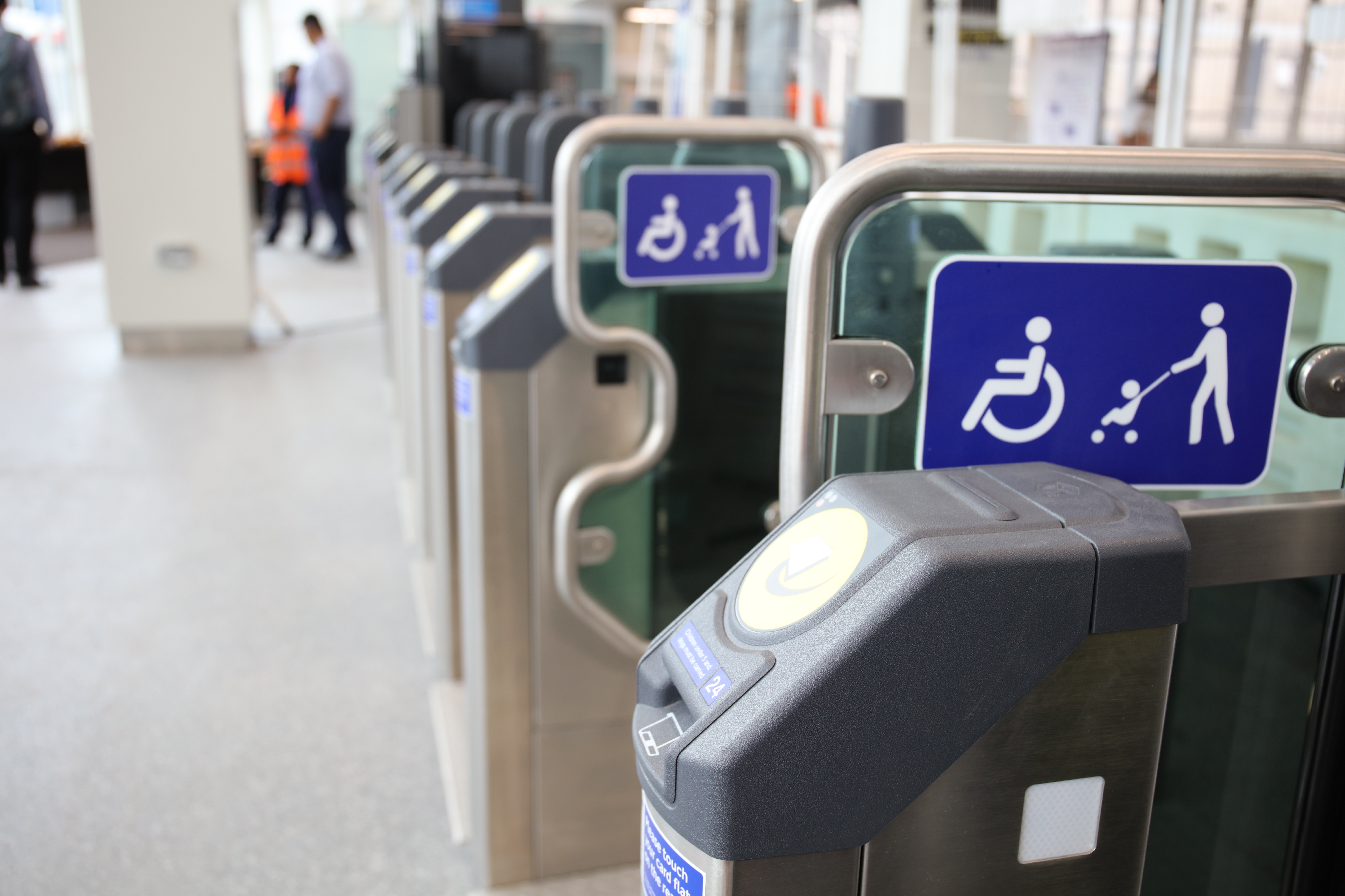 Images shows the new extended gateline at Ilford station ready for its first passengers