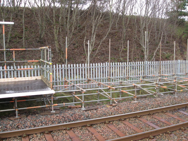 Scaffolding in position to form the extended northbound platform.