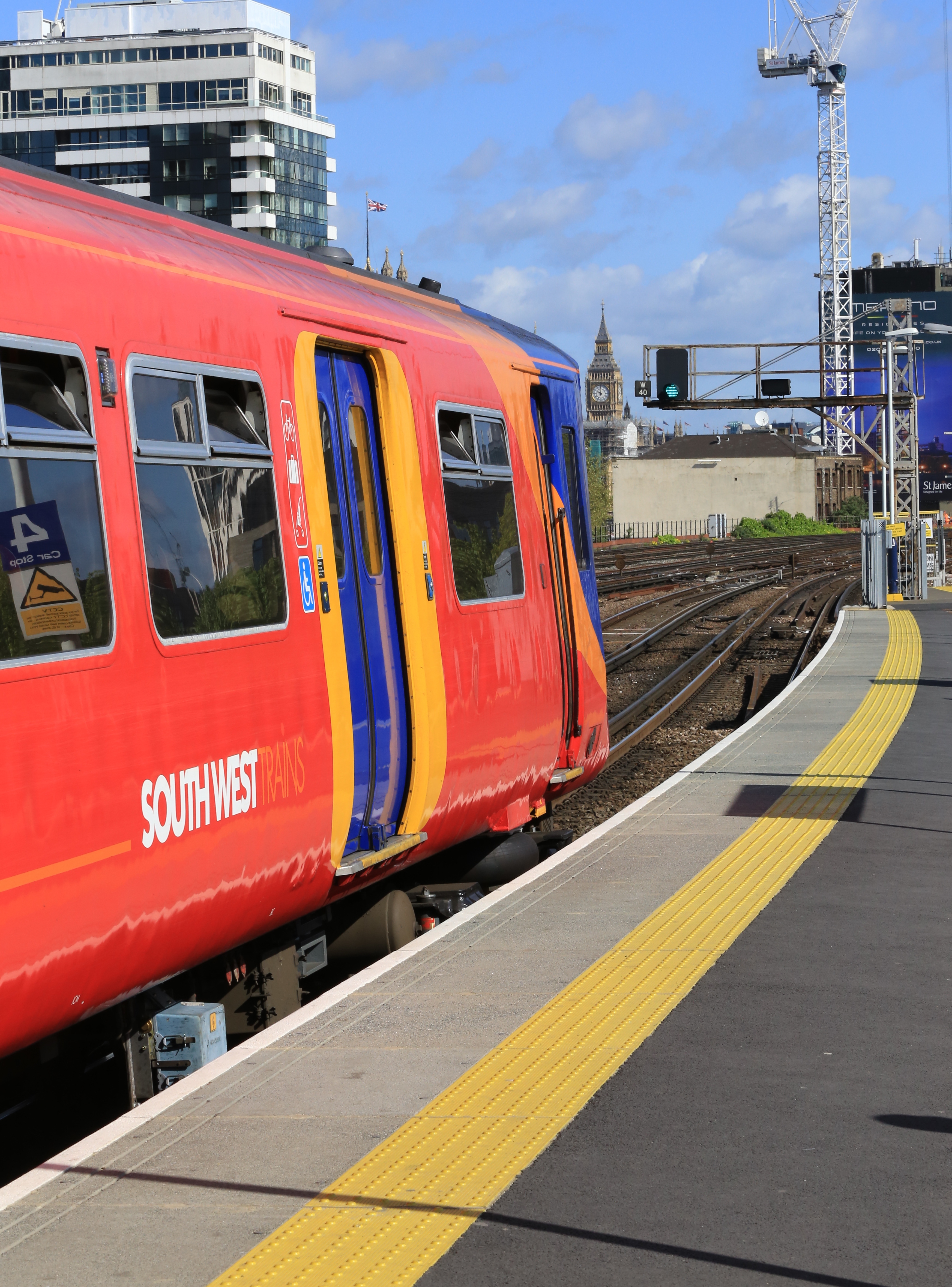 Vauxhall station, platforms 7 and 8, a green signal and Big Ben!