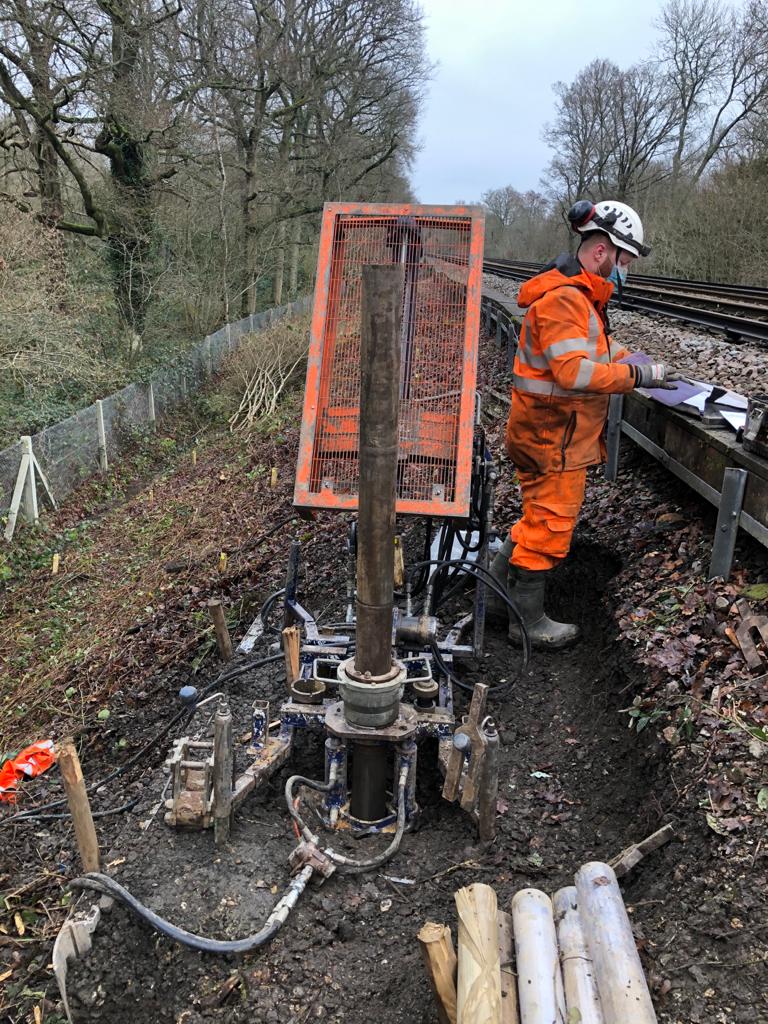 Ground conditions testing at Ockley Landslip - alder Copse embankment
