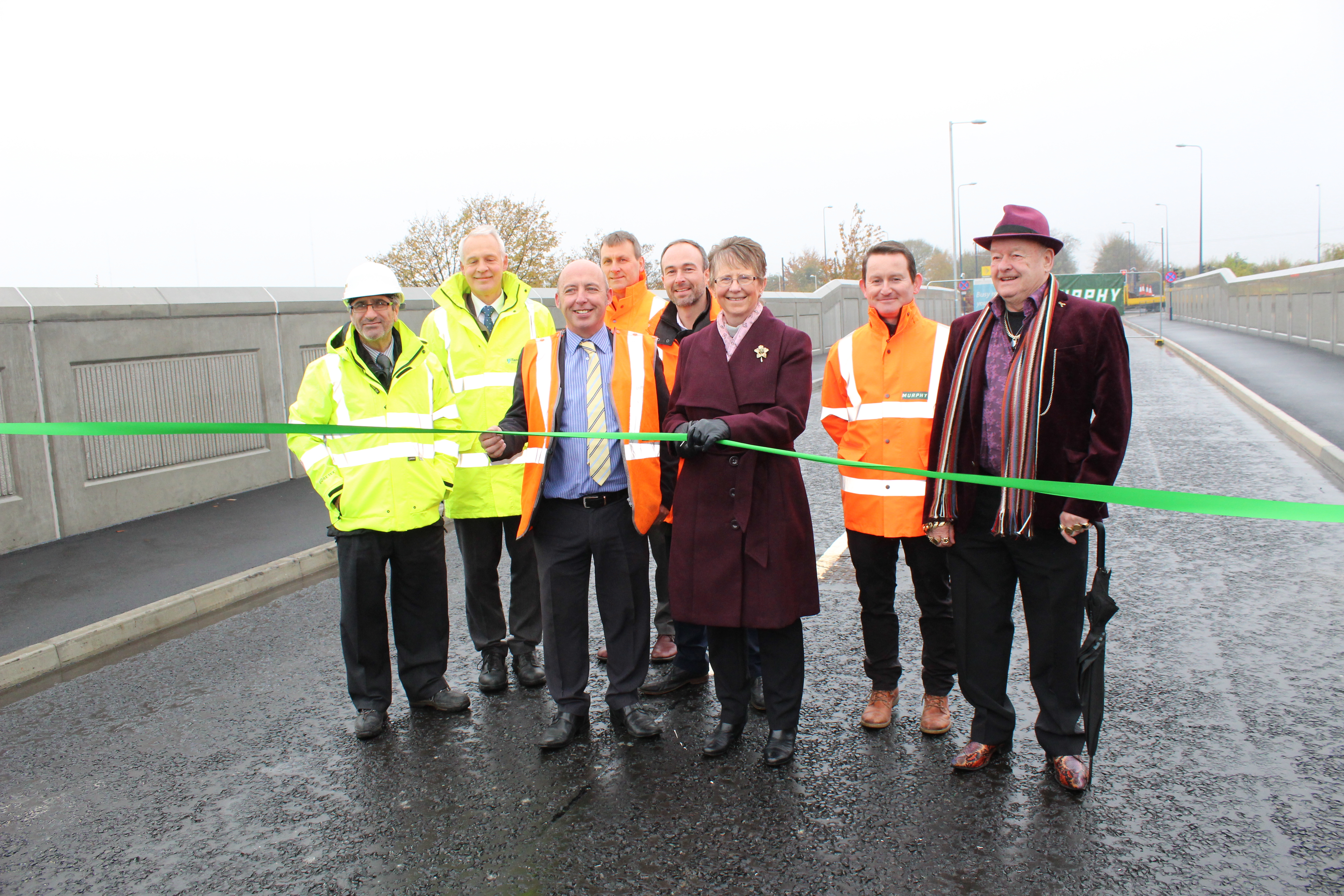 The ribbon about to be cut to mark the opening of the new Richmond Street bridge in Ashton-under-Lyne