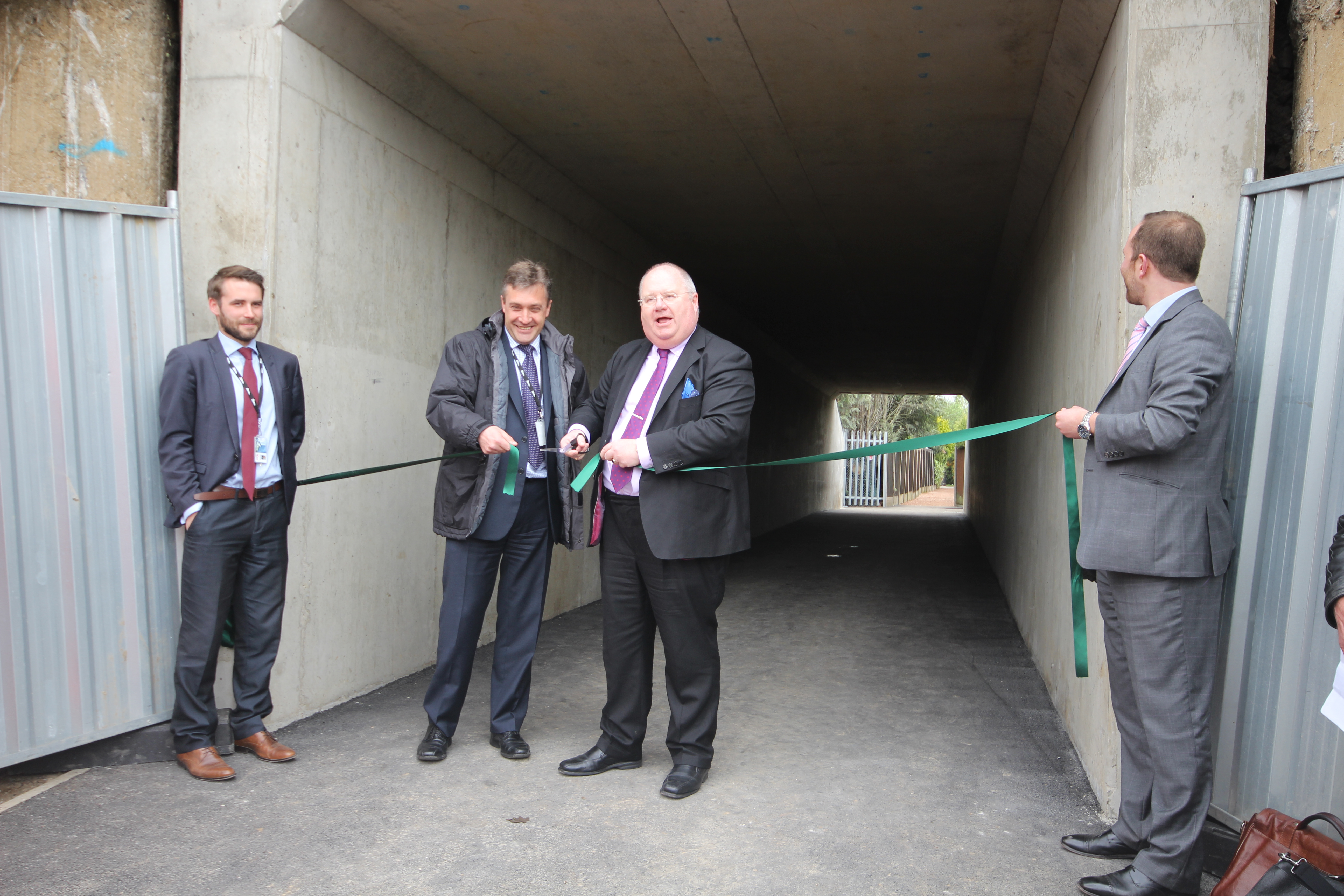 Brentwood and Ongar MP (and Communities Secretary) Eric Pickles opens the new underpass at Ingatestone