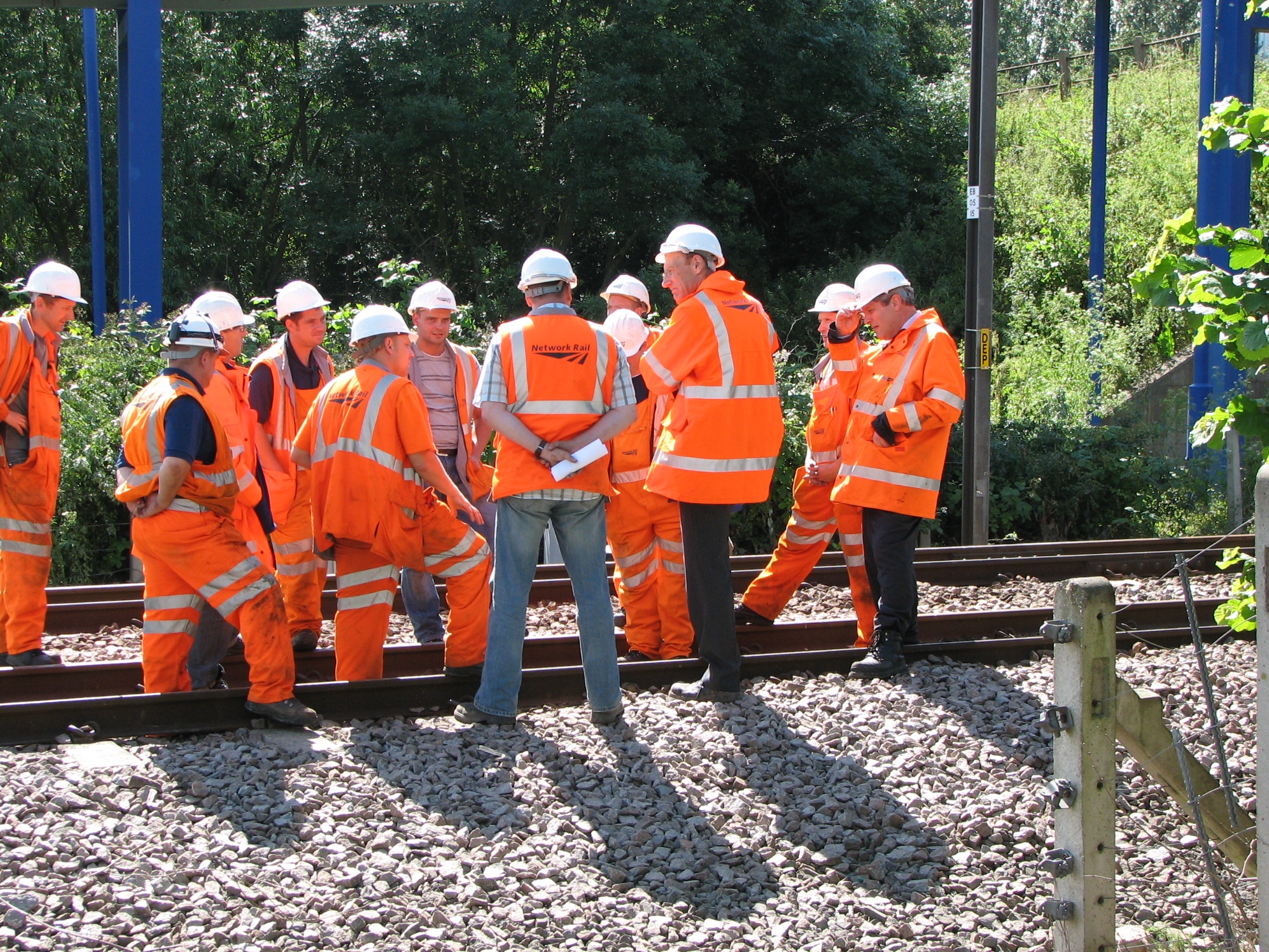 Netwrk Rail Chief Executive, John Armitt, visits staff working to restore rail services at Adwick on 2 July 2007