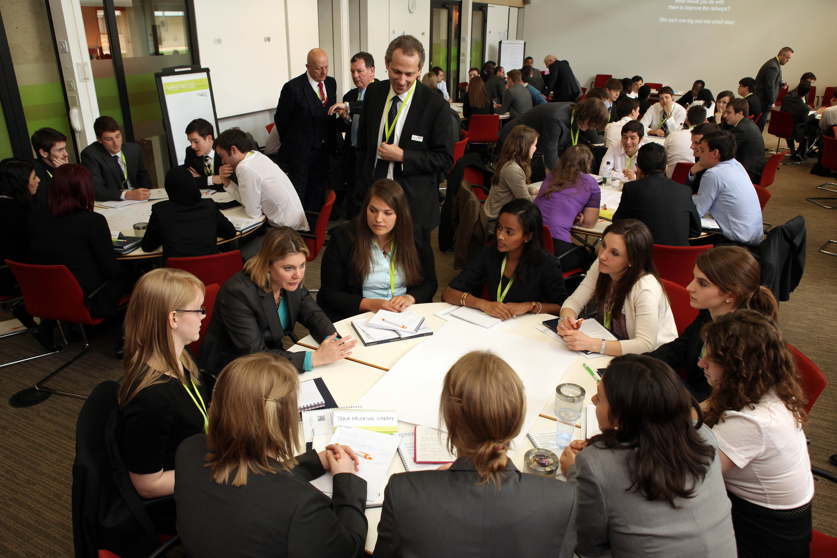 Transport Secretary Justine Greening talks to interns at visit to Track and Train rail industry scheme induction