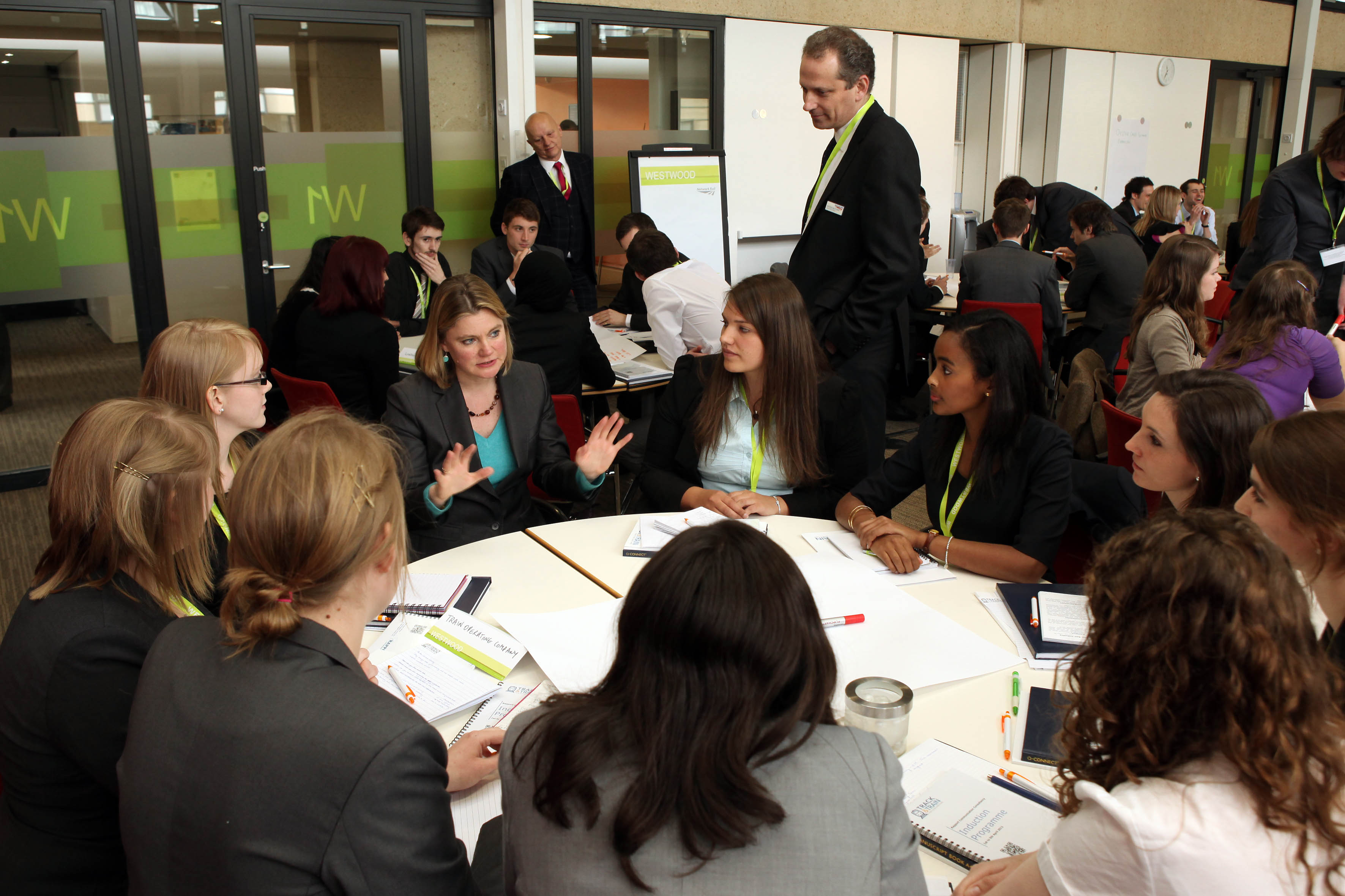 Transport Secretary Justine Greening talks to interns at visit to Track and Train rail industry scheme induction