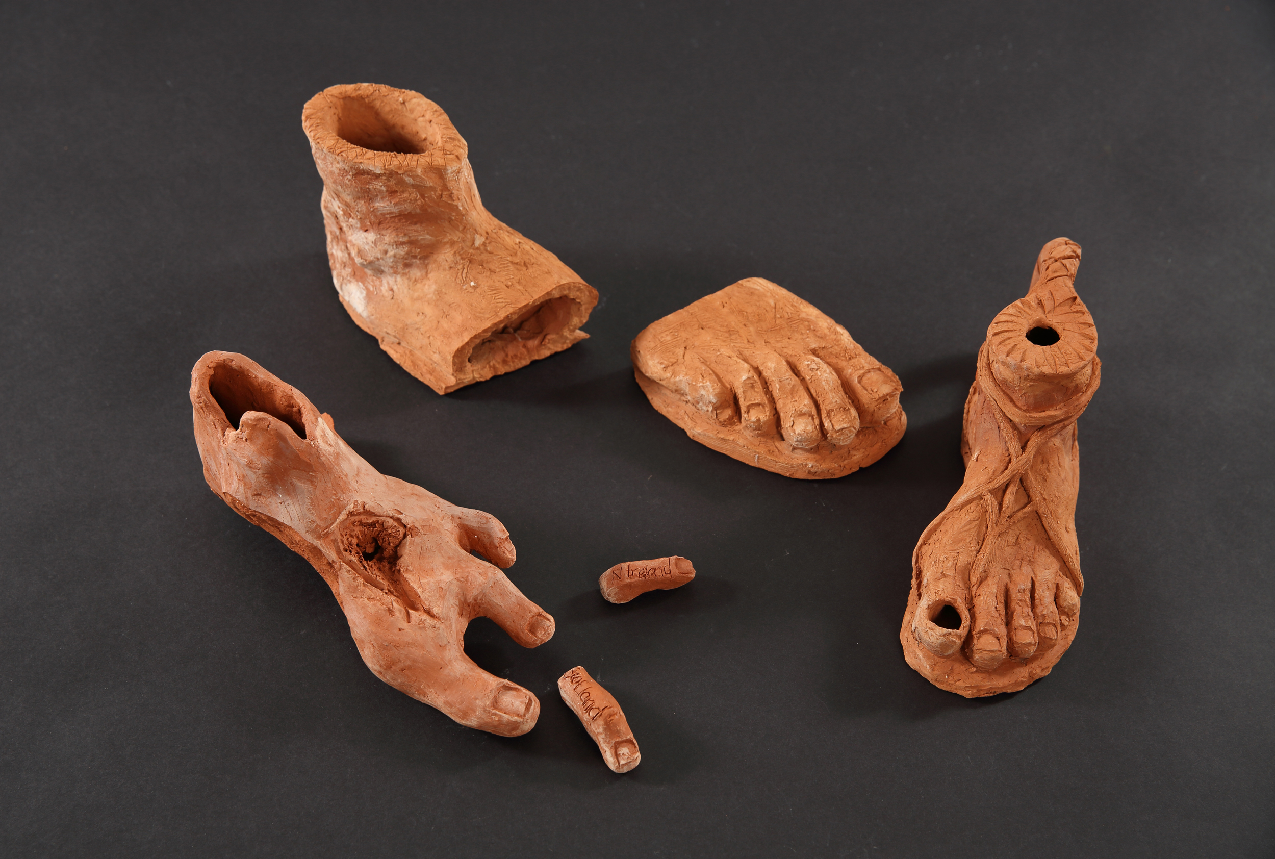 Jo Pearl's "Votive Feet" are inspired by a first century Roman oil lamp in the shape of a foot, excavated by archaeologists from under London Bridge station.