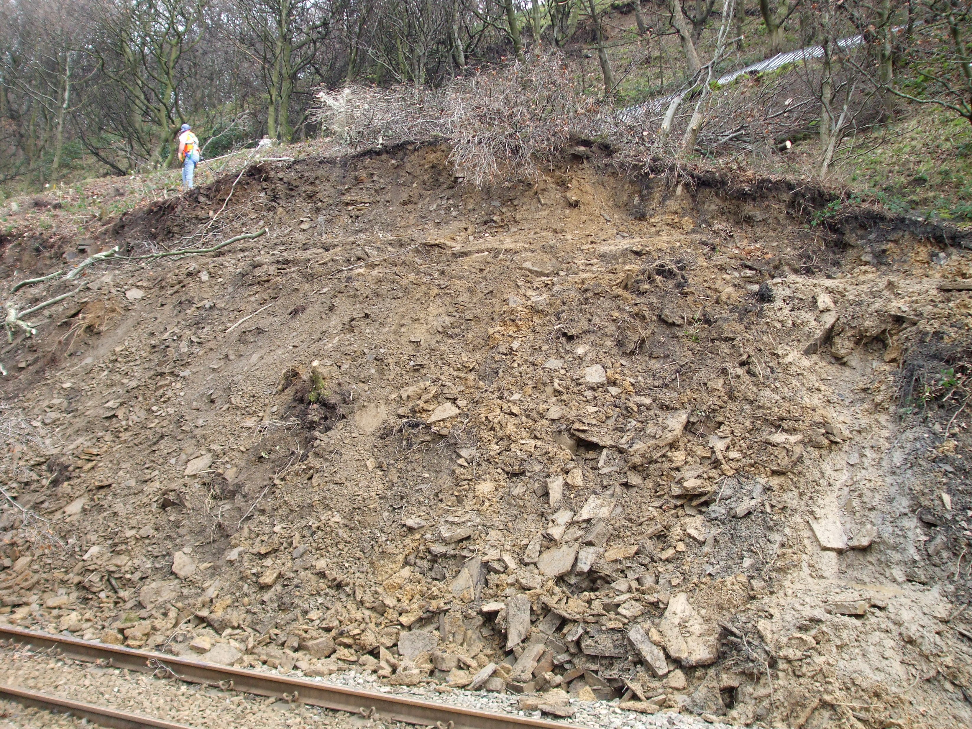 The bank slip at Elland which affected services between Hebden Bridge and Wakefield