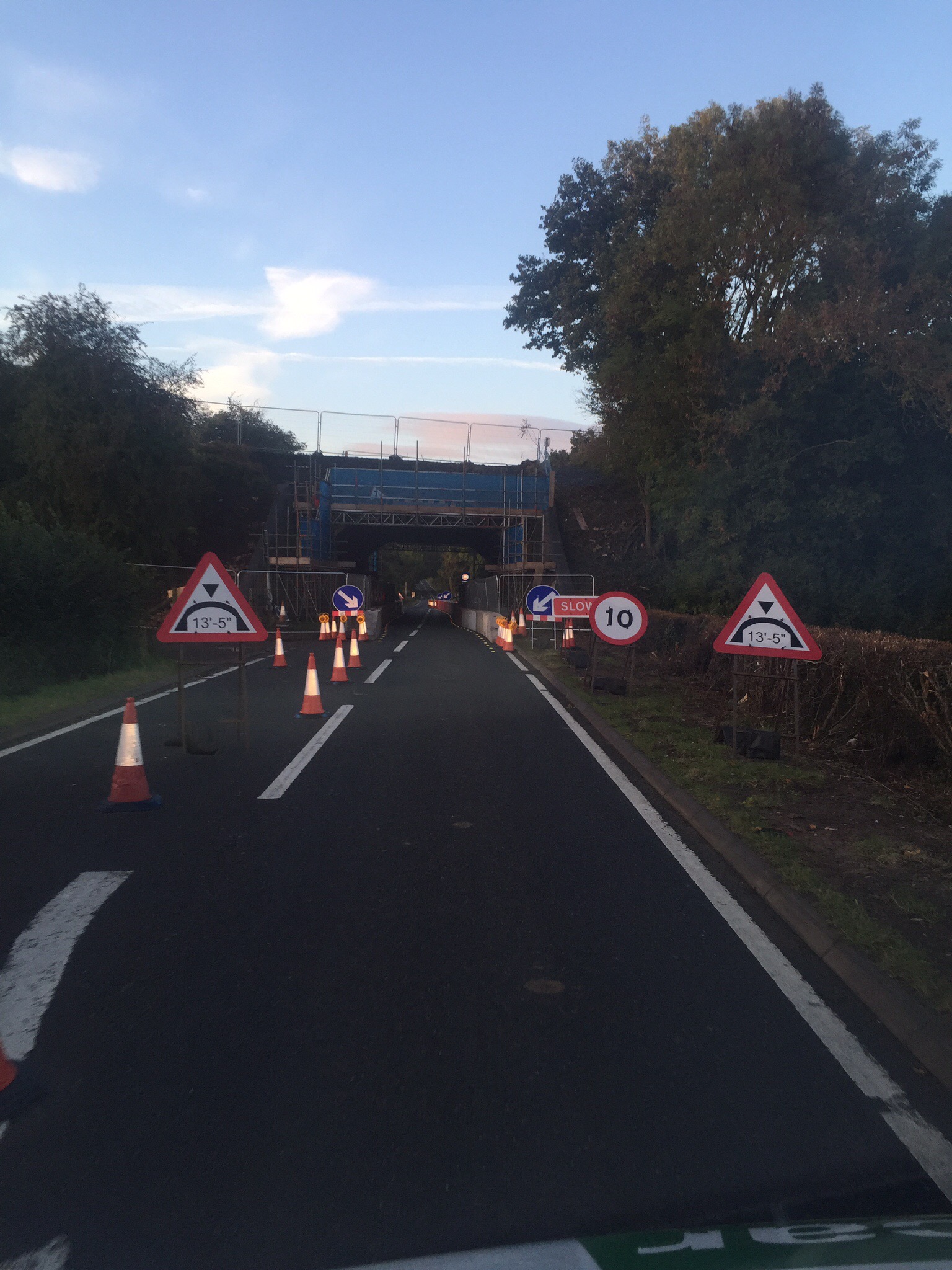 Lane restrictions as road users approach Fosse Way bridge.JPG