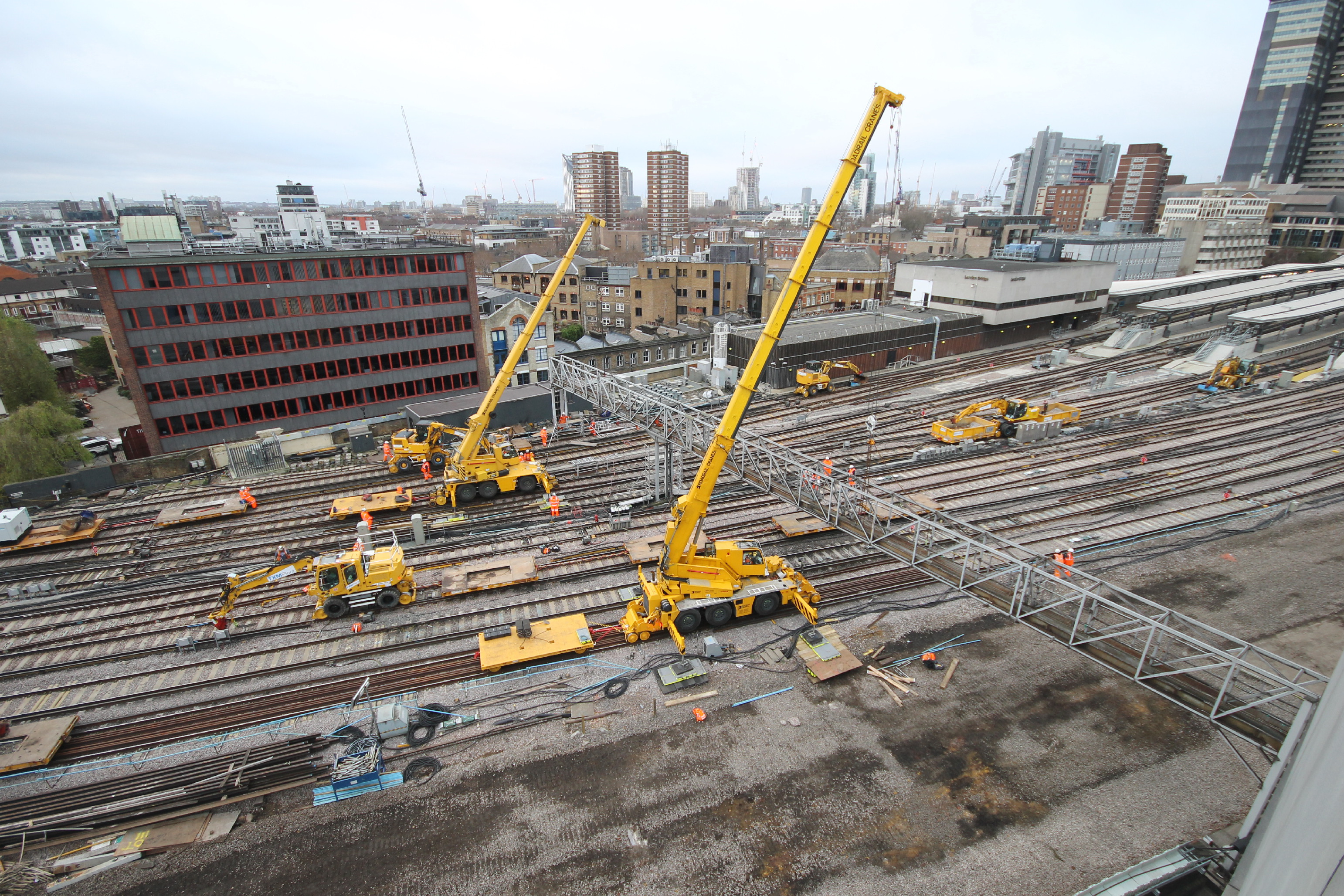 A huge signal gantry, which was used to control trains running in and out of London Bridge, is removed by crane over Christmas
