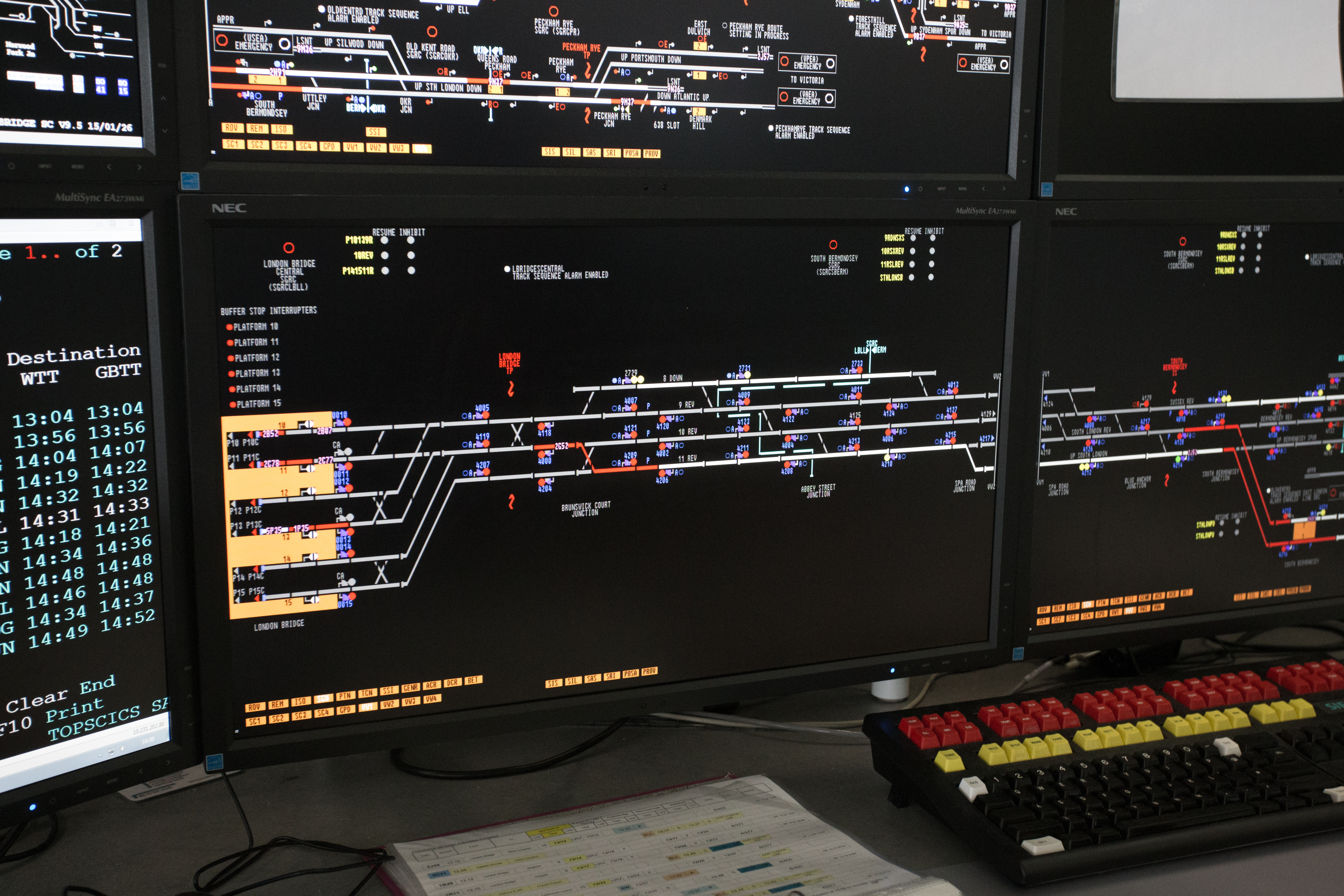 Close up of London Bridge south side on a WestCAD workstation. Based at Three Bridges Rail Operating Centre after Thameslink Programme moved them from London Bridge box itself.