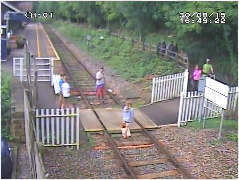 Matlock Bath - Man takes a picture of child on the track.JPG
