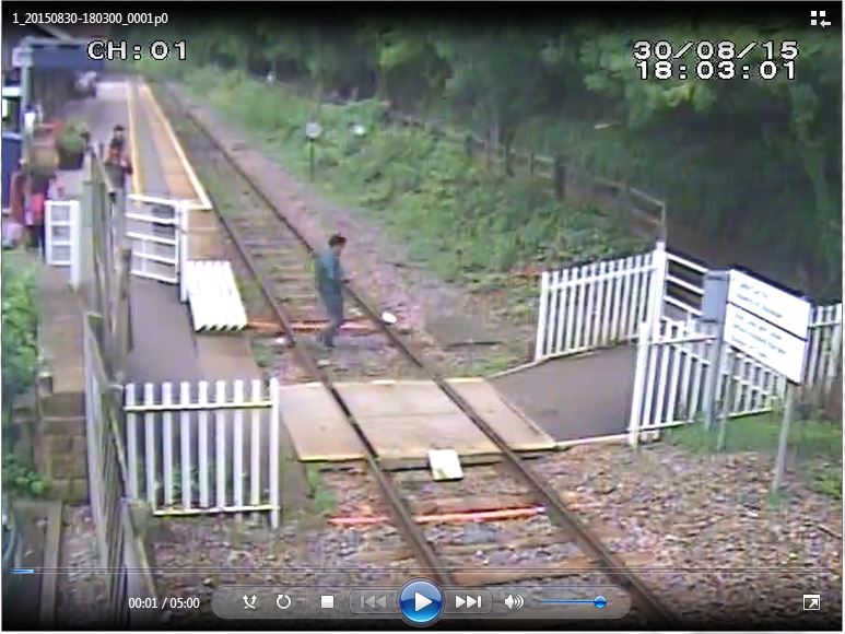 Matlock Bath - Man walks on the track while on the phone.JPG