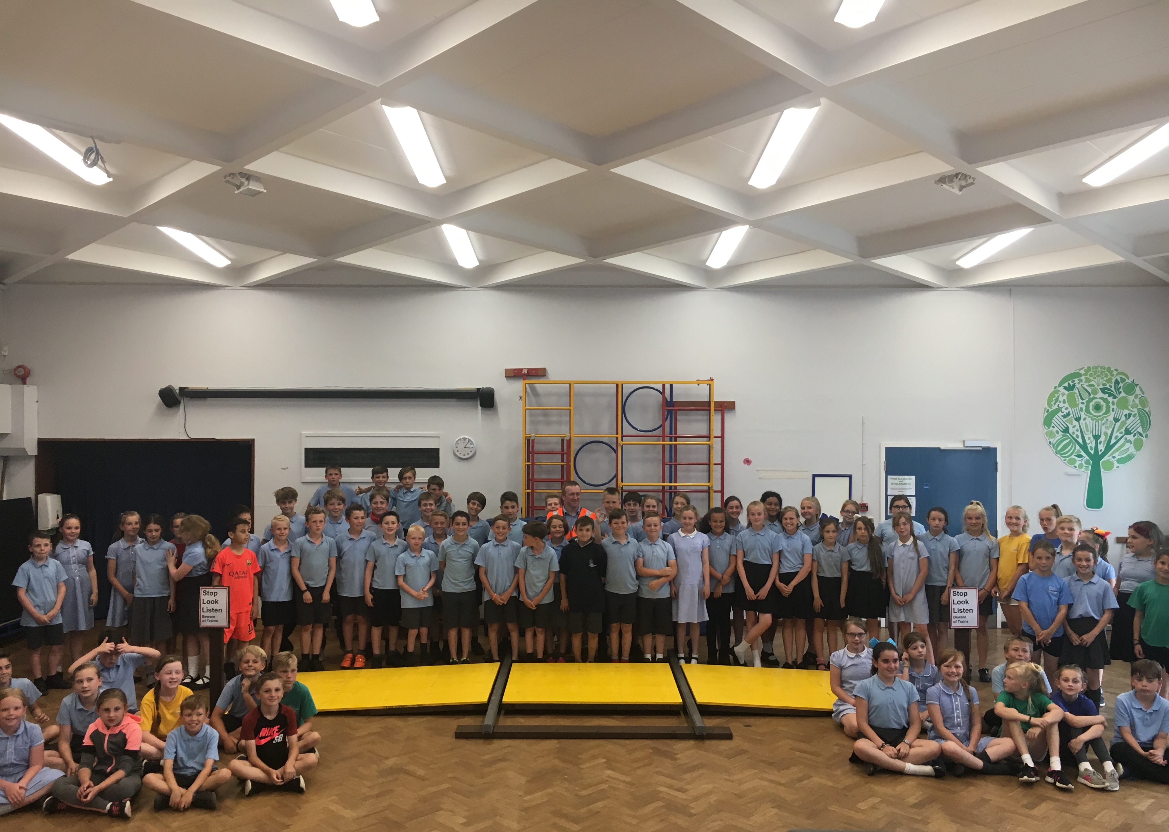 Over ninety Meole Brace Primary School took part in the rail safety event hosted by Network Rail employees, using the model level crossing for the first time