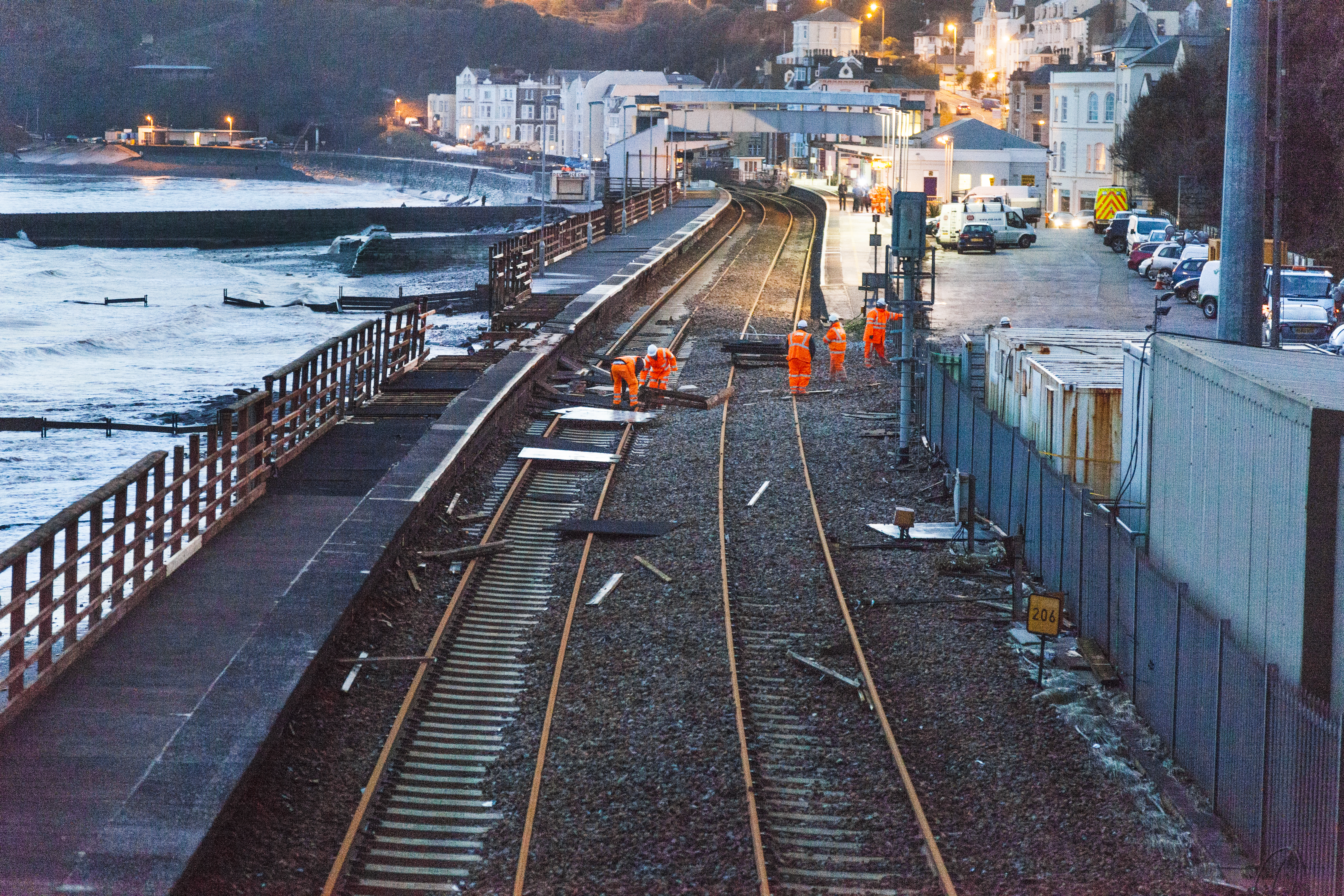 Damage to the railway at Dawlish in Devon