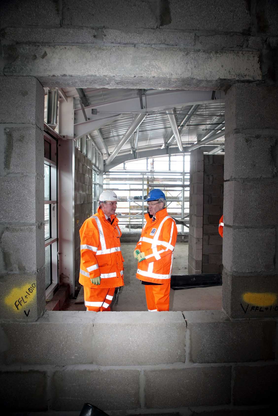 Ron McAulay, Network Rail director, Scotland and Stewart Stevenson MSP, Transport Minister, pay a visit to the site of the new Bathgate Station to view progress. The station will open on 18 October, with the new Airdrie-Bathgate line opening in full on 12 December