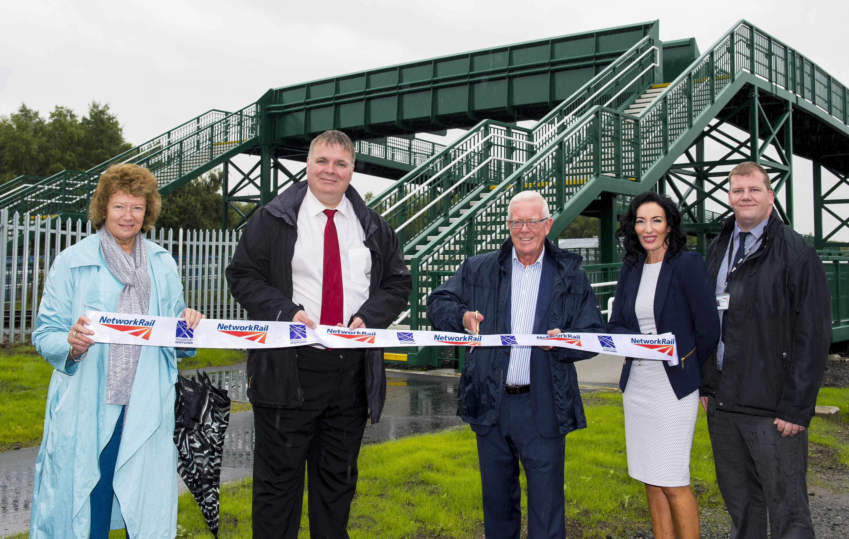 Millhall (L-R): Community councillor Wendy McLean, councillor Chris Kane, Bruce Crawford MSP, Libby Gallacher and Jeremy Spence of Network Rail