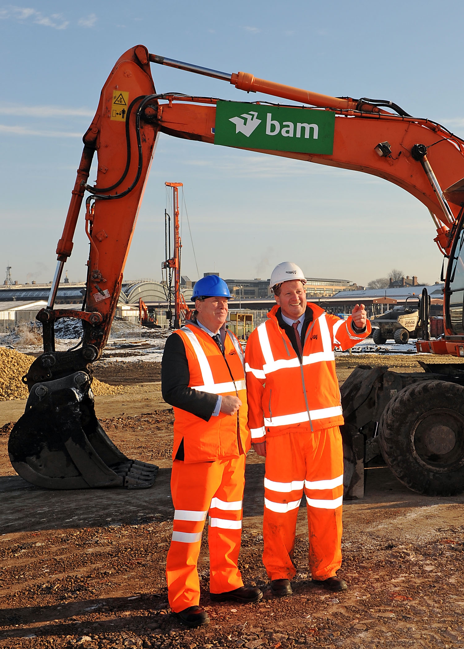 Rail Minister Simon Burns and Network Rail Route Managing Director Phil Verster see work start on the new Route Operating and Workforce Development Centres and officially open the turntable which has been brought in to replace the old York engineer's triangle.