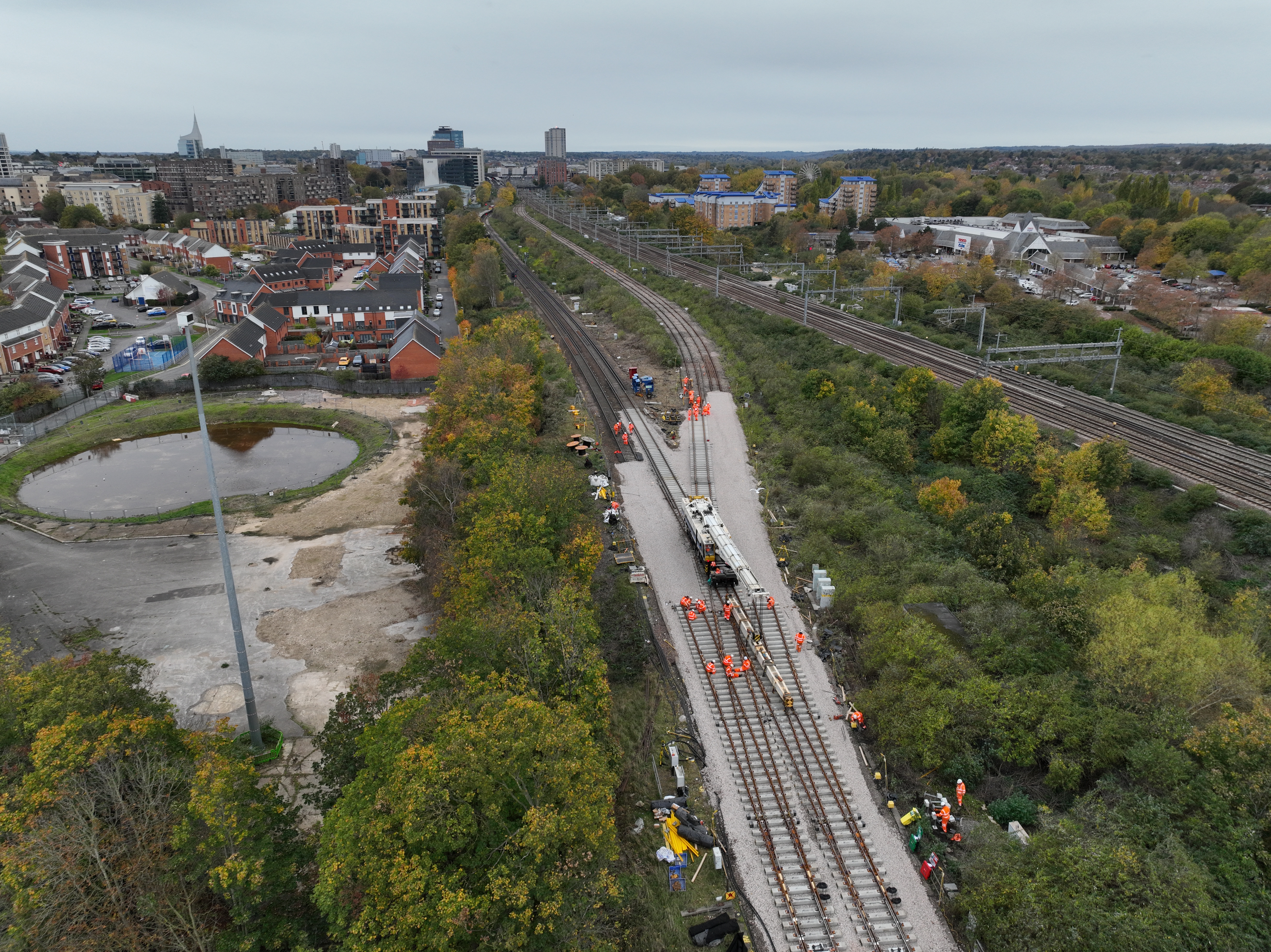 Drone view of work taking place at Reading Spur Junction (Credit Mick Clark/Network Rail).JPG