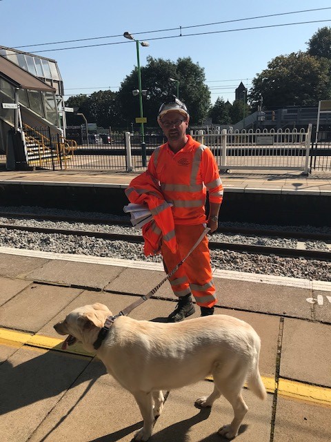 Network Rail engineer Dave Lockett with Asha the dog.jpg