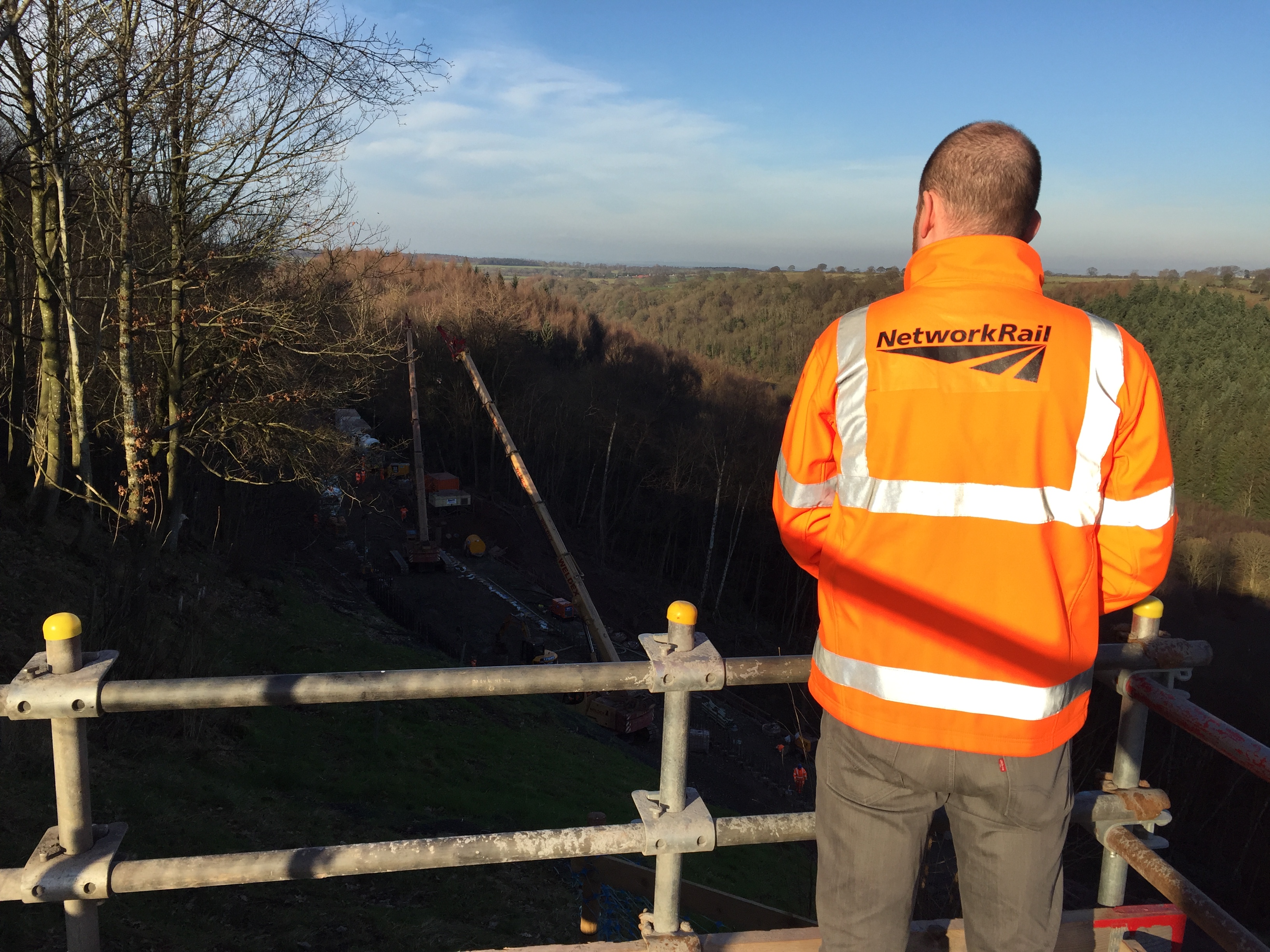 Network Rail staff looking over the work ongoing at Eden Brows.JPG