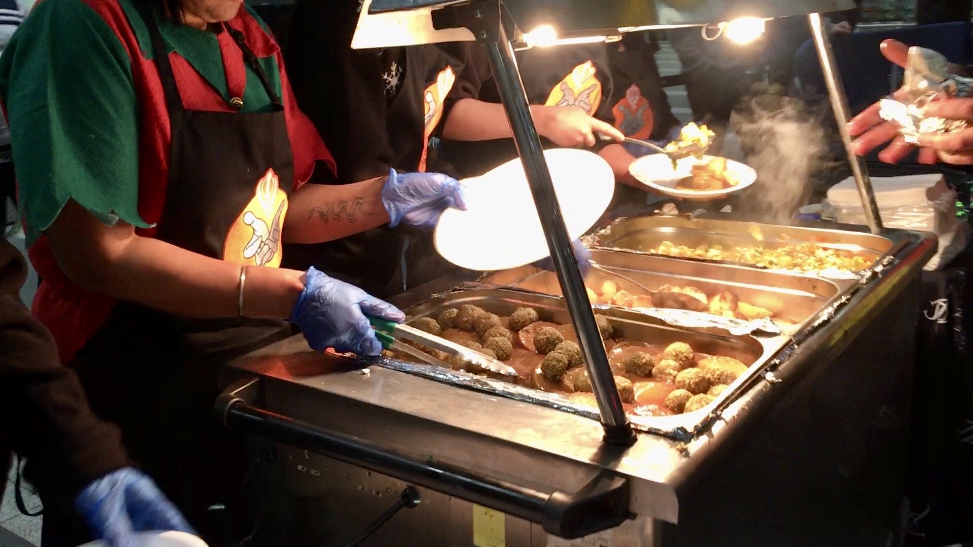 Birmingham New Street Christmas Eve meal 2018 - close up of food preparation
