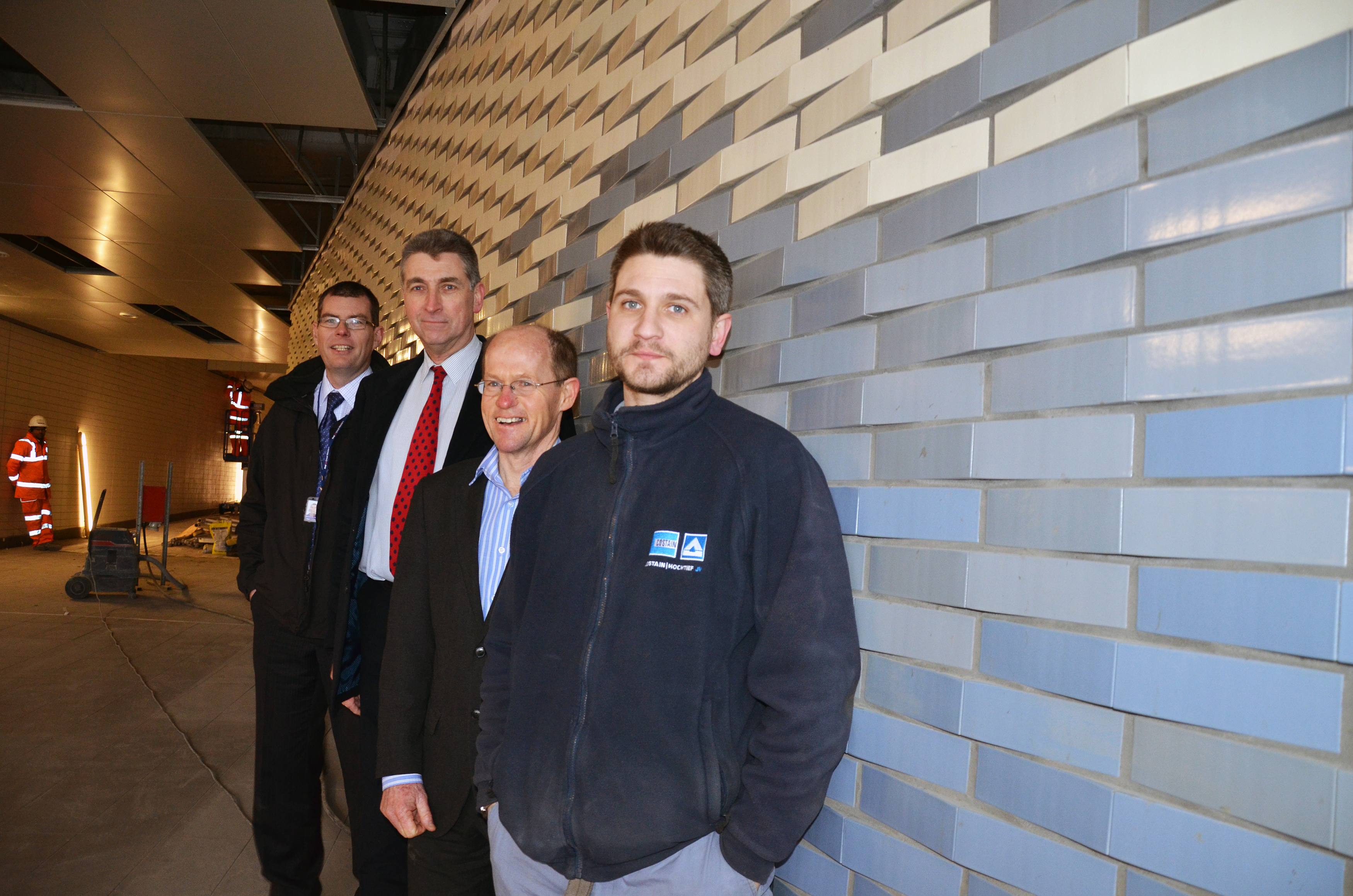 The newly refurbished subway at Reading station opens on Friday March 1st. From left to right: Gareth Taylor, FGW; Cllr Tony Page, Reading Borough Council, Graham Denny, Network Rail and Dave Forbes, construction manager Costain.