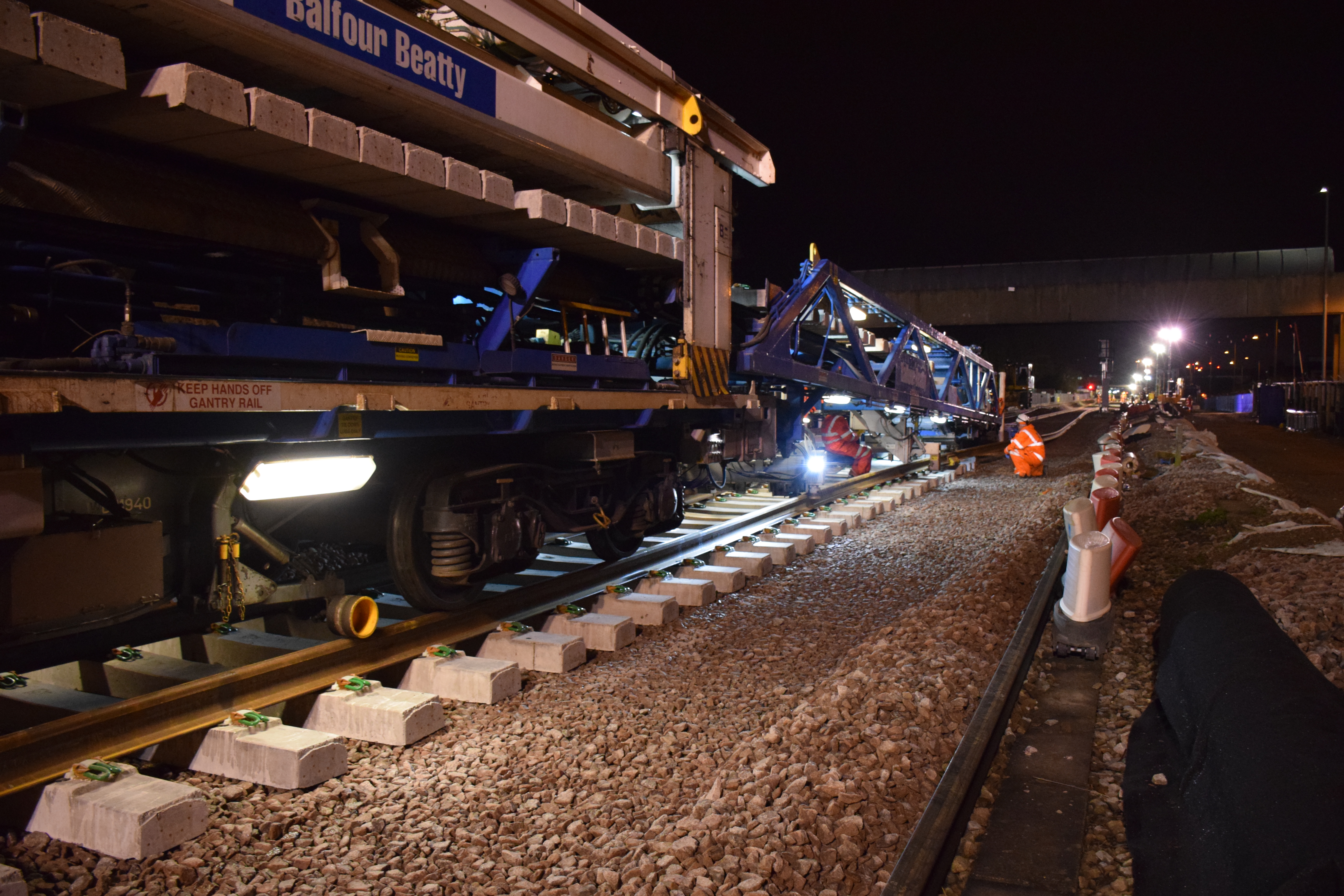 New Track Construction (NTC) Machine being used in Abbey Wood to lay up to 11 sleepers a minute and automatically fix the rail (5)
