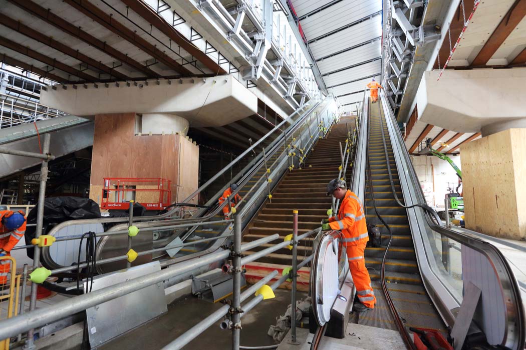 Two new escalators are installed in the final section of the new, street-level concourse at London Bridge, due to open in January 2018.