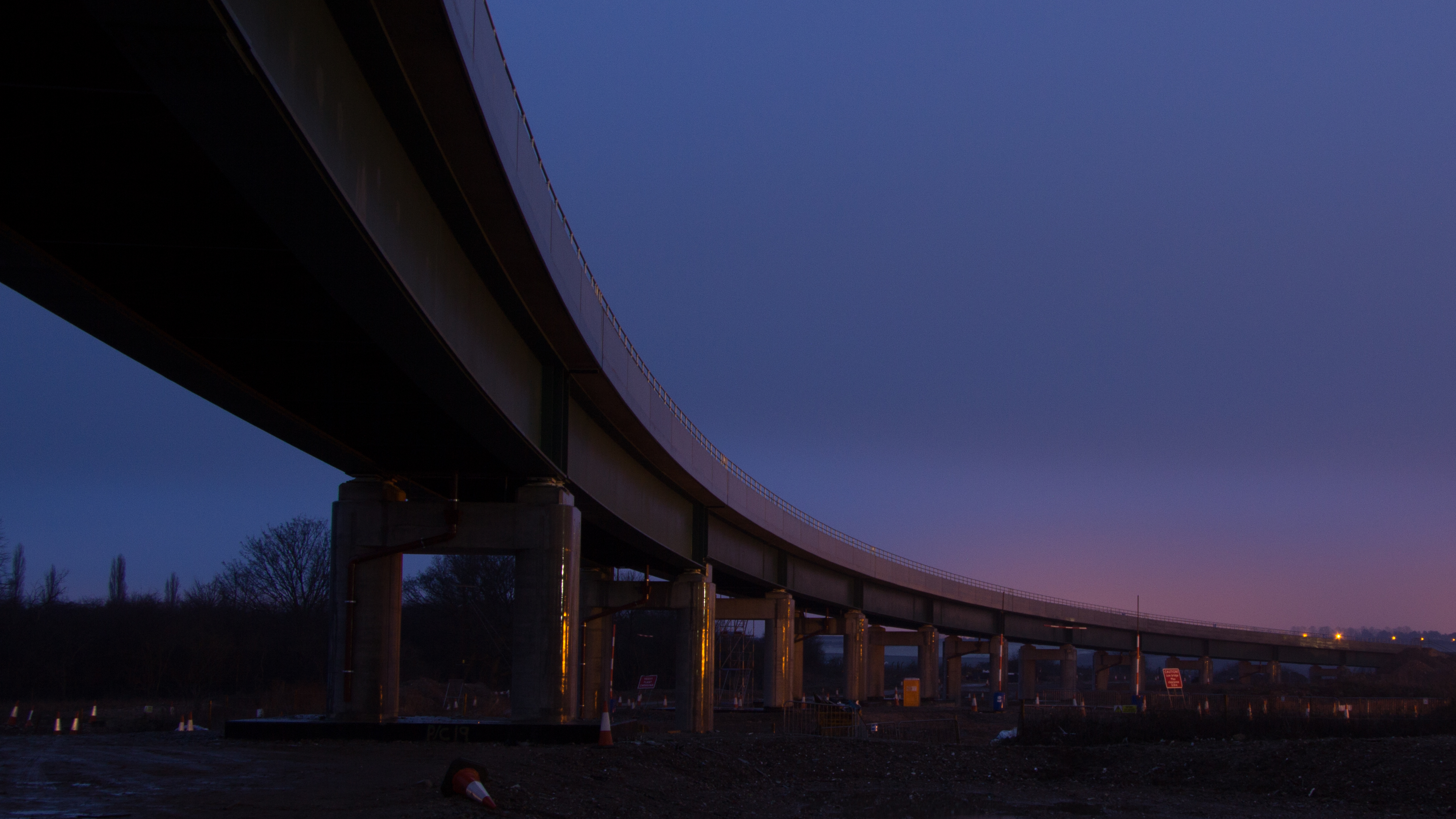 Night shot of the new Hitchin flyover
