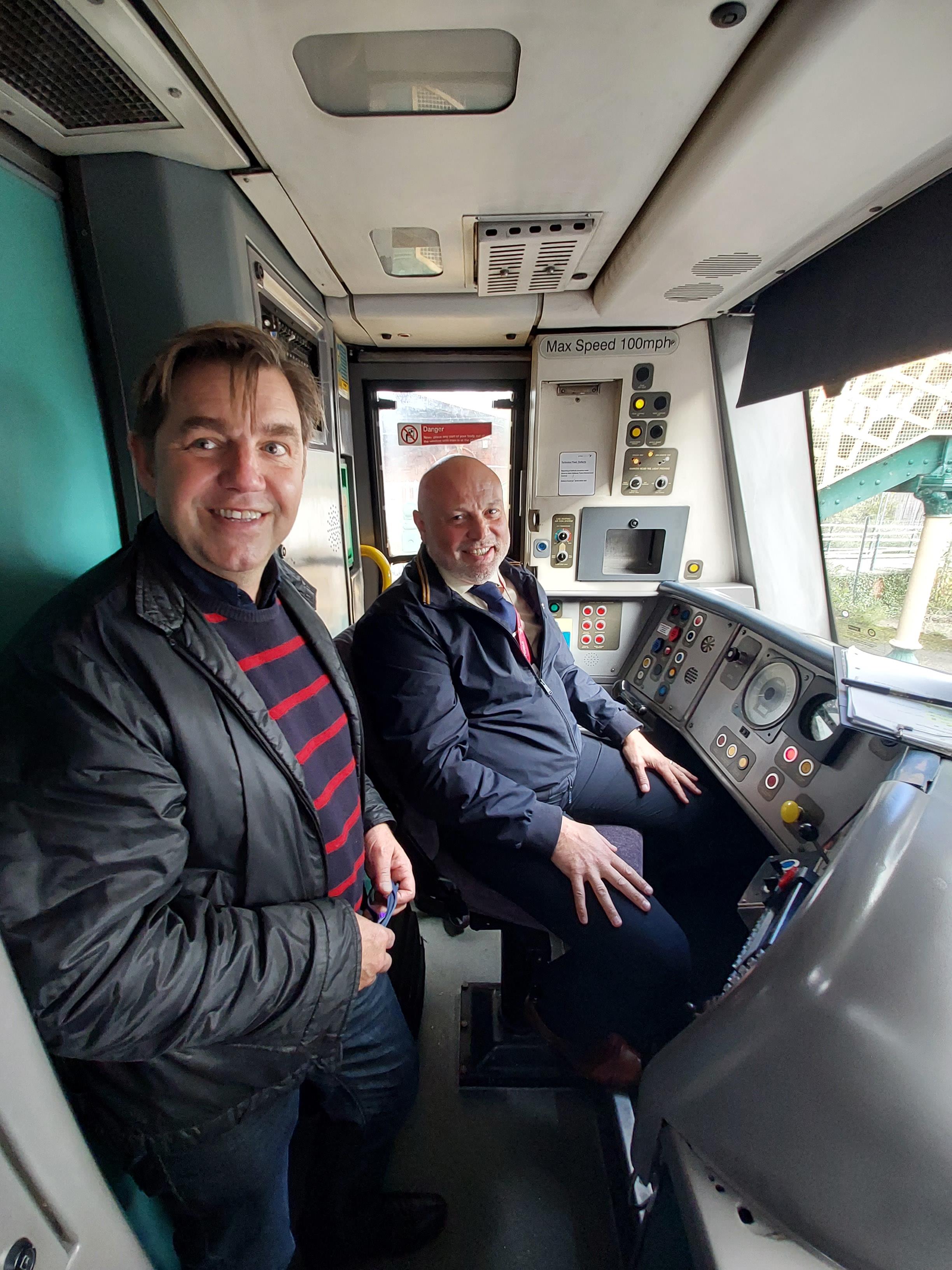 Nik Johnson (left), Mayor of Cambridgeshire and Peterborough, on a CrossCountry train cab ride