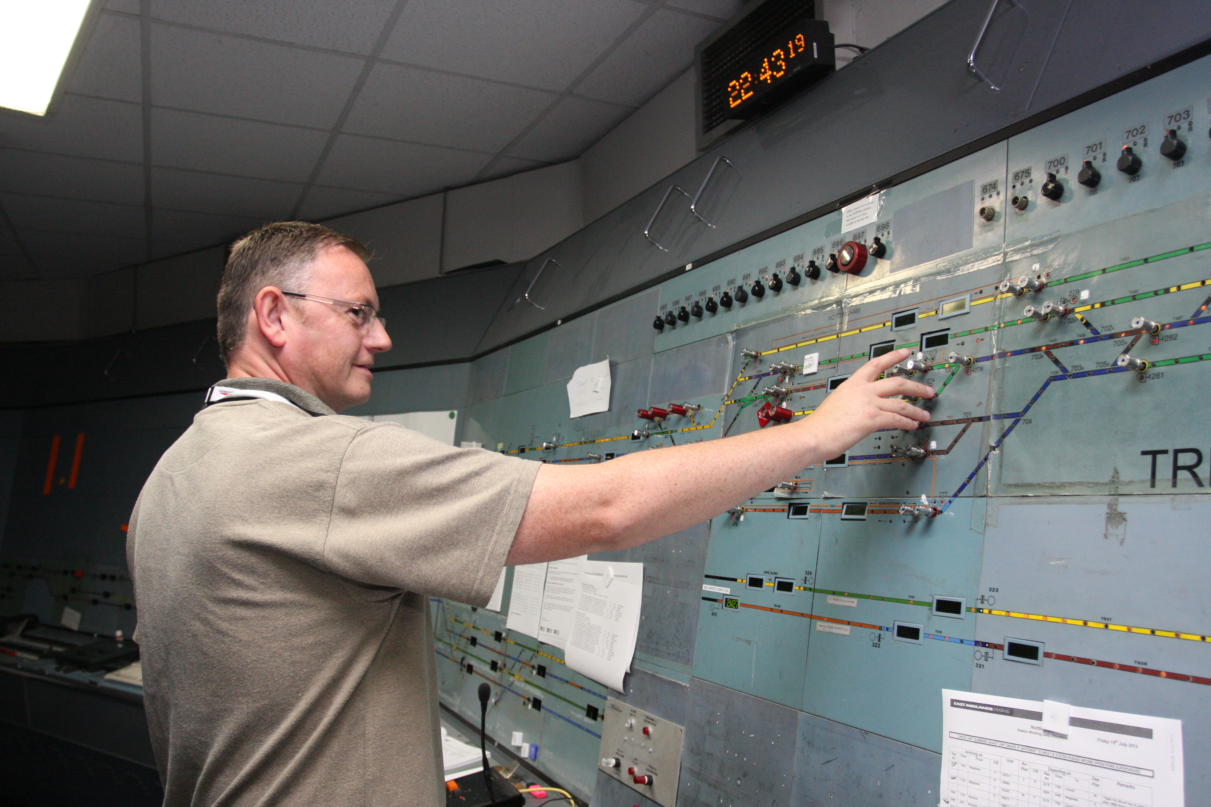 Nottingham resignalling: Local operations manager Glyn Williams helps to signal the last train from Trent PSB - 1969-2013.