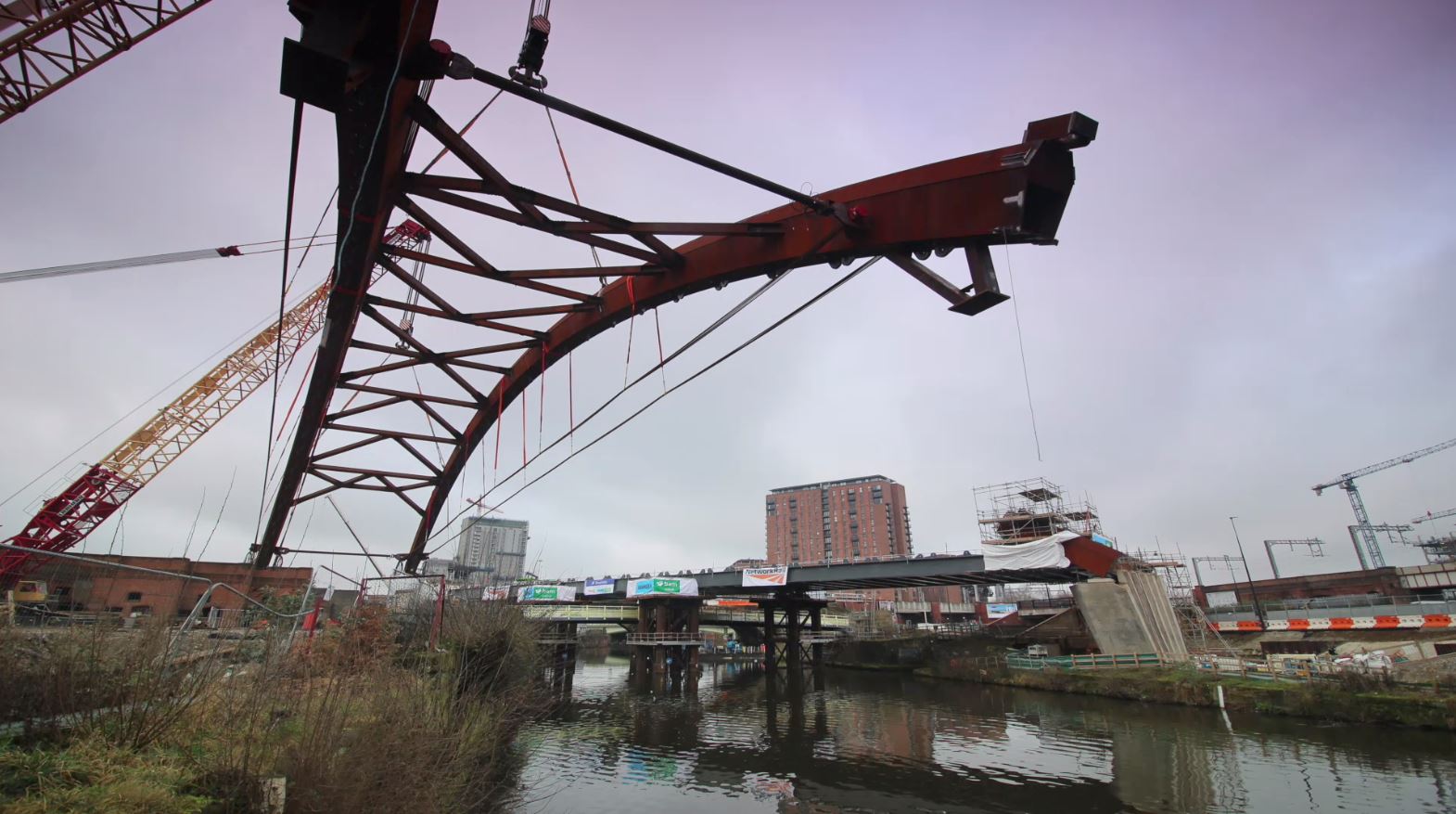 Ordsall Chord being lifted into place on Tuesday 21 February 2017