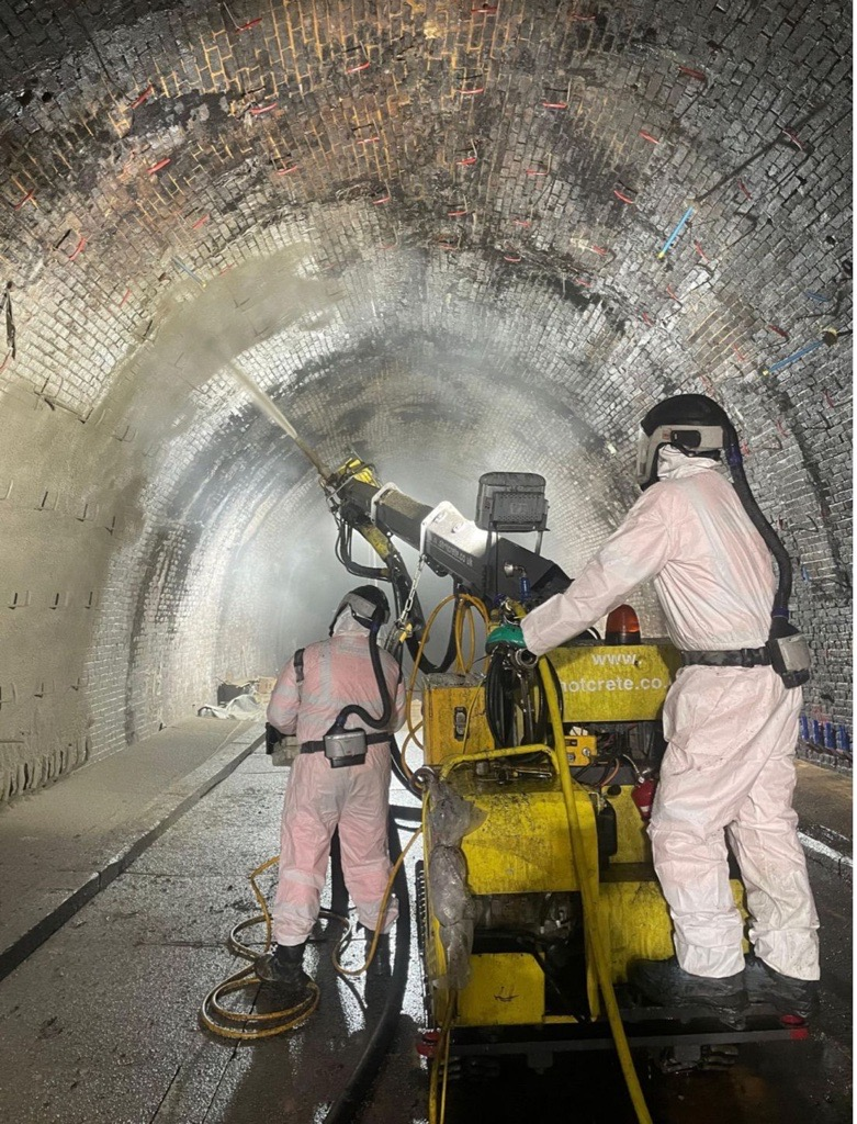 Inside Ore Tunnel engineers have repaired brickwork and sprayed concrete to prevent water entering the tunnel